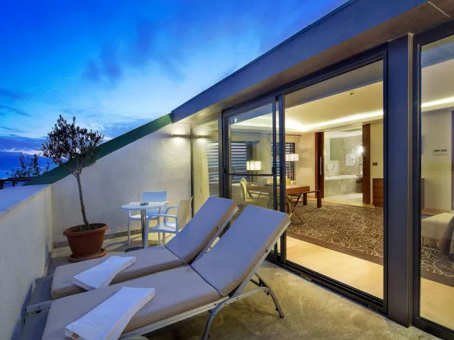 Rôzne typy izieb sú k dispozícii, vrátane štandardných, deluxe, junior suít a suít, s výmerou od 35 m² po 90 m², podľa individuálnych preferencií a požiadaviek. Väčšina izieb ponúka výhľad na more.