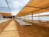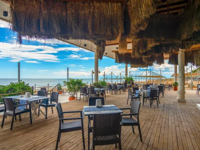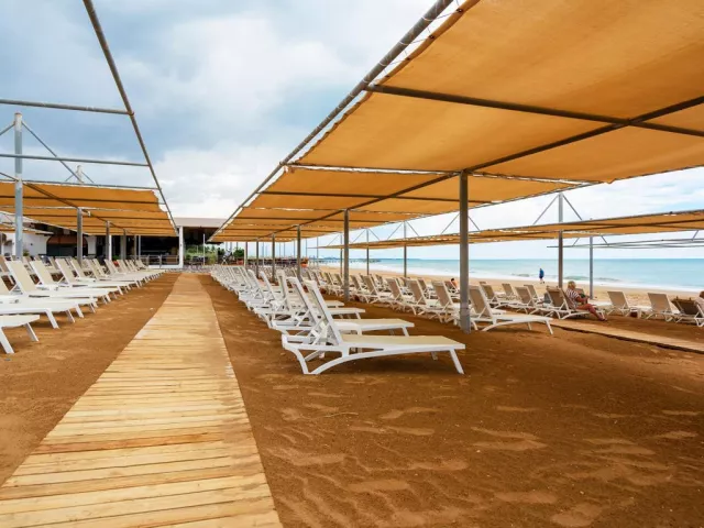 Hotel má vlastnú pláž s jemným pieskom a pozvoľným vstupom do mora, na ktorú sa dá pohodlne dopraviť hotelovým autobusom zdarma, ktorý premáva každých 15 minút. Na pláži sú zadarmo k dispozícii slnečníky, ležadlá, matrace a uteráky. K dispozícii je aj ultra all inclusive bar s obsluhou od 10:00 do 18:00.
