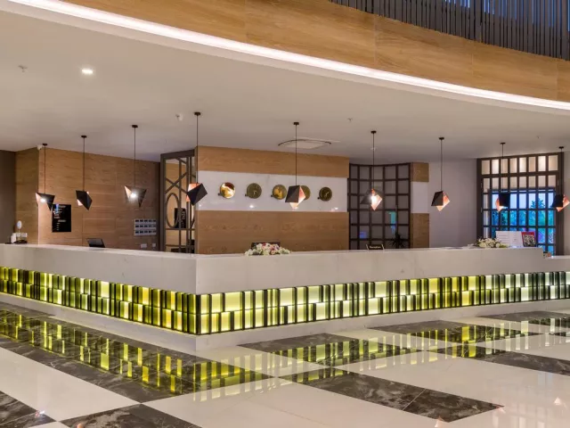 Hotel je päťhviezdičkový a bol otvorený v roku 2018. Skladá sa z 279 izieb rozmiestnených v troch budovách s piatimi poschodiami a tromi výťahmi. Služby zahŕňajú 24-hodinovú recepciu, hlavnú reštauráciu Ocean s bufetovým stravovaním medzinárodnej kuchyne, dve à la carte reštaurácie (talianska a turecká) s jednou bezplatnou rezerváciou za pobyt, tri bary, mobilnú kuchyňu, dva vonkajšie bazény so šmykľavkami a detským bazénom. Zriadené sú aj činnosti ako fitnescentrum, animácie a wellness centrum, pričom sú k dispozícii aj služby za príplatok ako masáže a vodné športy.