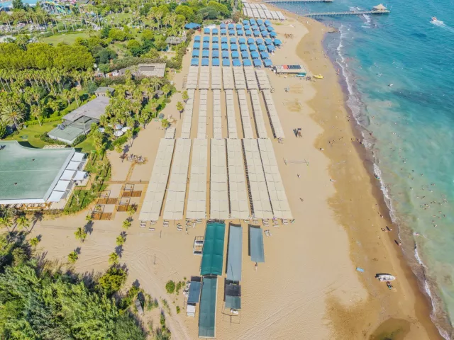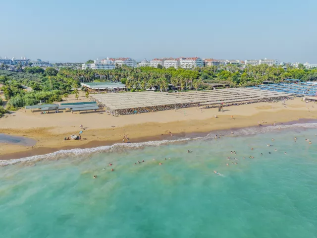 Vlastná piesočnatá pláž sa nachádza 380 metrov od hotela, pričom je zabezpečená bezplatná kyvadlová doprava. Možnosť občerstvenia a nápojov v Beach clube je samozrejmosťou. Ležadlá, slnečníky a plážové osušky sú k dispozícii zdarma.