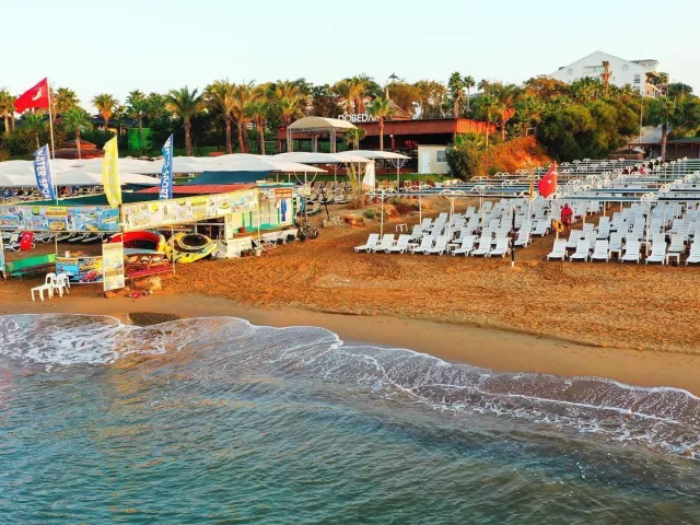 Vlastná piesočnatá pláž sa nachádza 250 m od hotela, prístupná cez cestu. Ležadlá, slnečníky a plážové osušky sú k dispozícii bez poplatku.