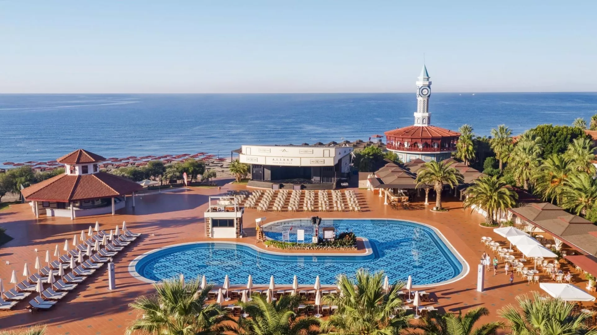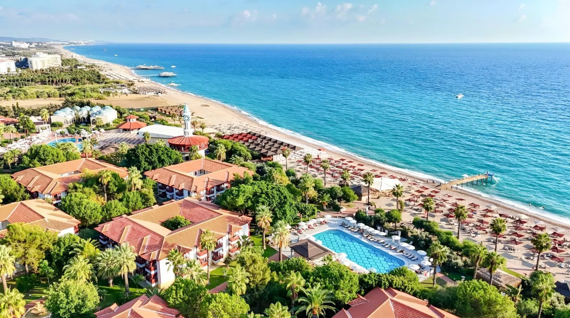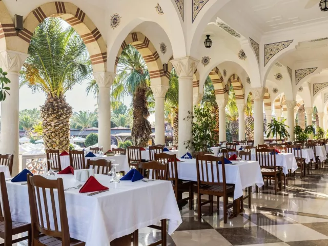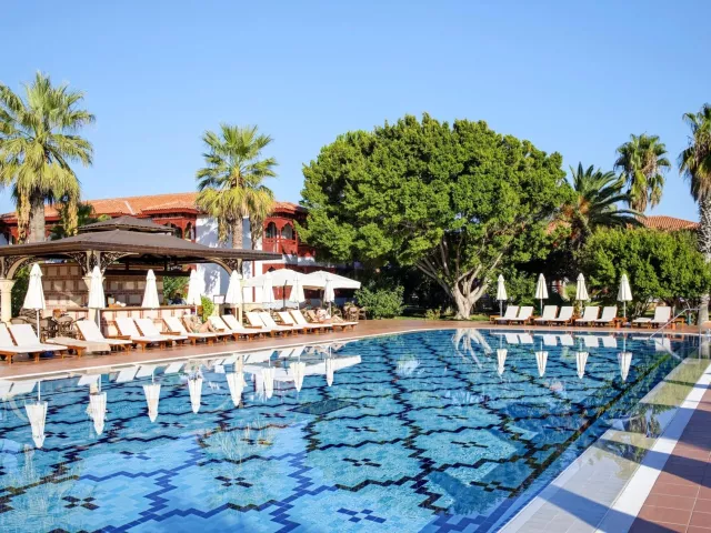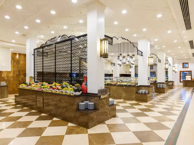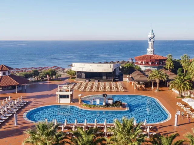 Komplex disponuje vstupnou halou s recepciou, hlavnou reštauráciou, dvoma á la carte reštauráciami (za poplatok), dvanástimi barami, konferenčnou miestnosťou a obchodným centrom. V exteriéri sa nachádzajú dva vonkajšie bazény, relaxačný bazén pre osoby nad 15 rokov, snack bar pri bazéne a aquapark s toboganmi pre deti aj dospelých. Terasa na slnenie je vybavená lehátkami, slnečníkmi a osuškami, ktoré sú k dispozícii zadarmo. WiFi pripojenie je k dispozícii zdarma v verejných priestoroch aj na izbách. V hoteli sa pravidelne organizujú denné a večerné animačné programy a zábavy.