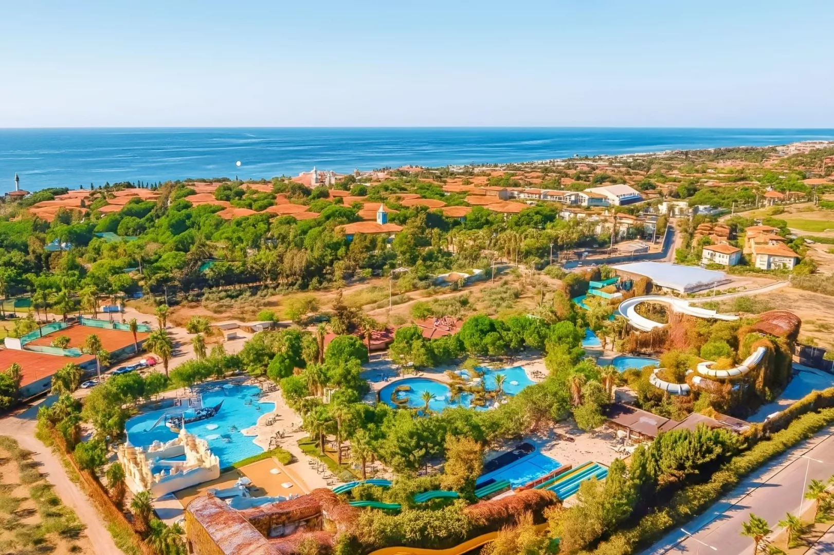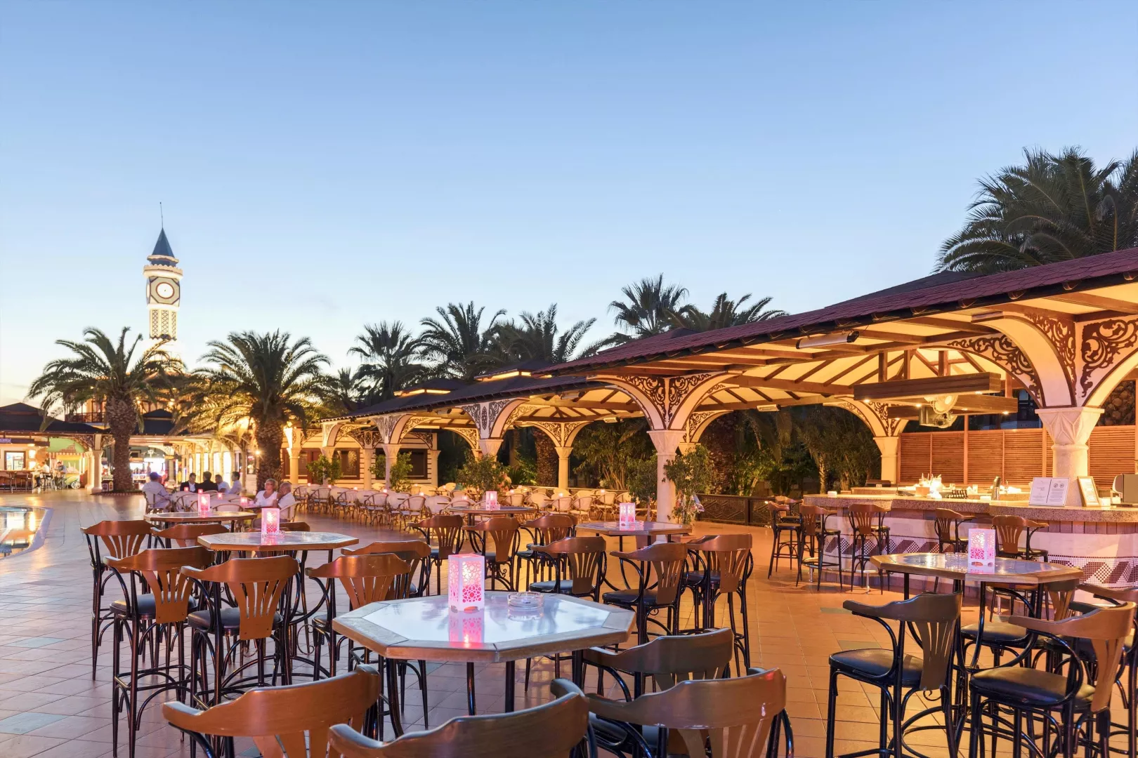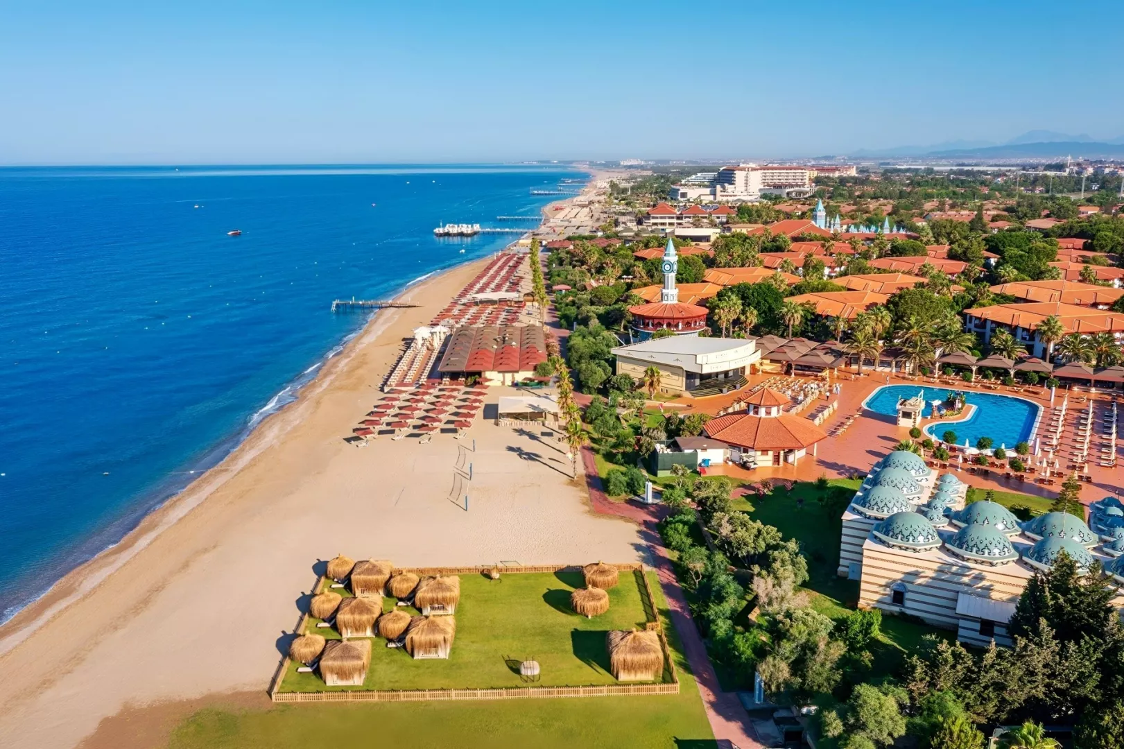 Komplex disponuje vstupnou halou s recepciou, hlavnou reštauráciou, dvoma á la carte reštauráciami (za poplatok), dvanástimi barami, konferenčnou miestnosťou a obchodným centrom. V exteriéri sa nachádzajú dva vonkajšie bazény, relaxačný bazén pre osoby nad 15 rokov, snack bar pri bazéne a aquapark s toboganmi pre deti aj dospelých. Terasa na slnenie je vybavená lehátkami, slnečníkmi a osuškami, ktoré sú k dispozícii zadarmo. WiFi pripojenie je k dispozícii zdarma v verejných priestoroch aj na izbách. V hoteli sa pravidelne organizujú denné a večerné animačné programy a zábavy.