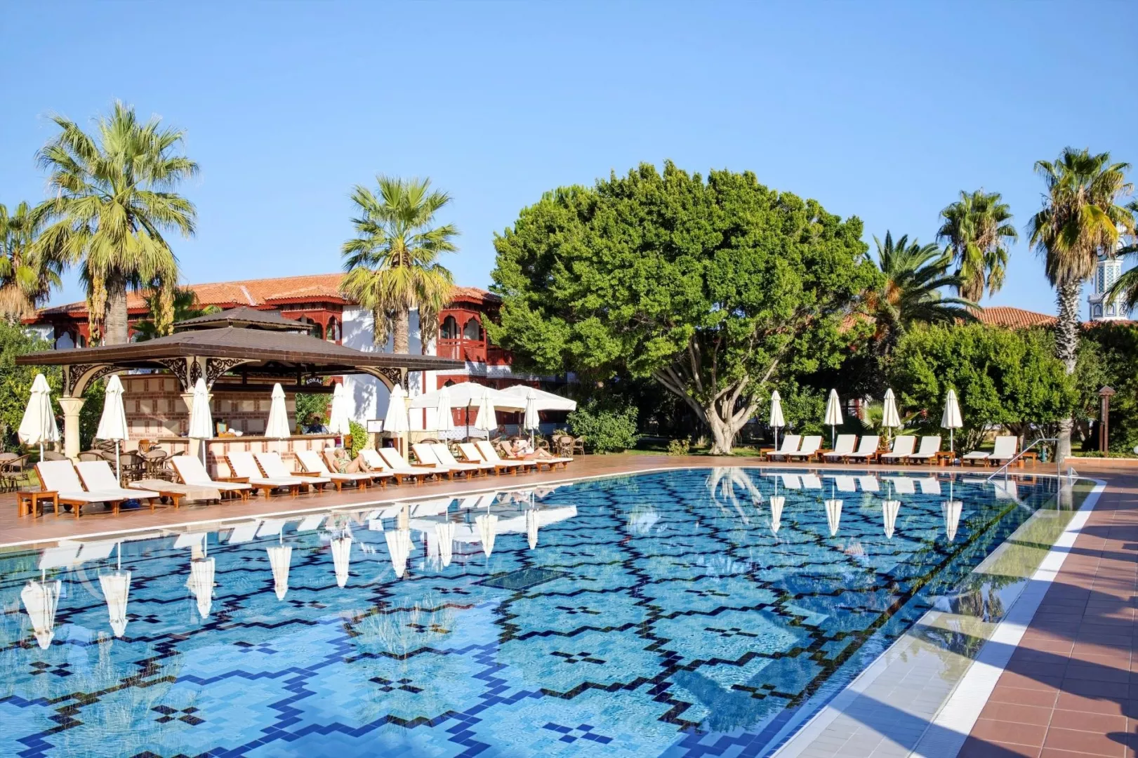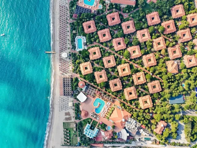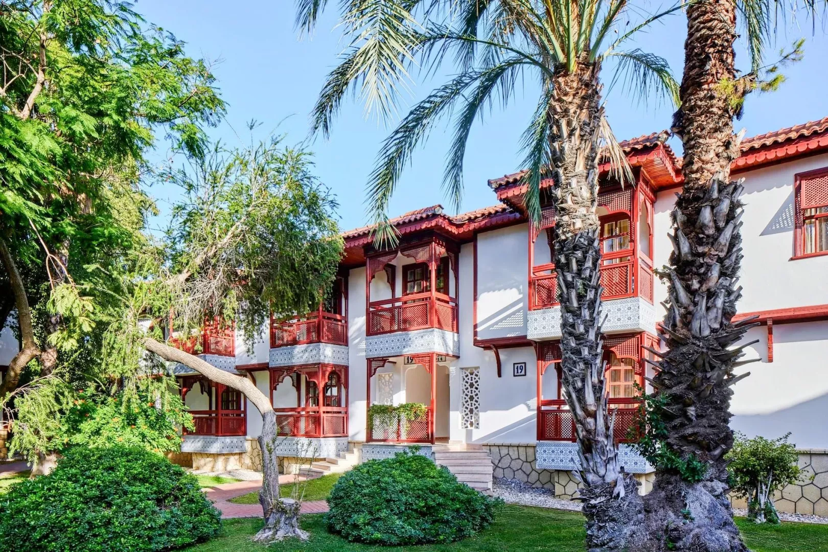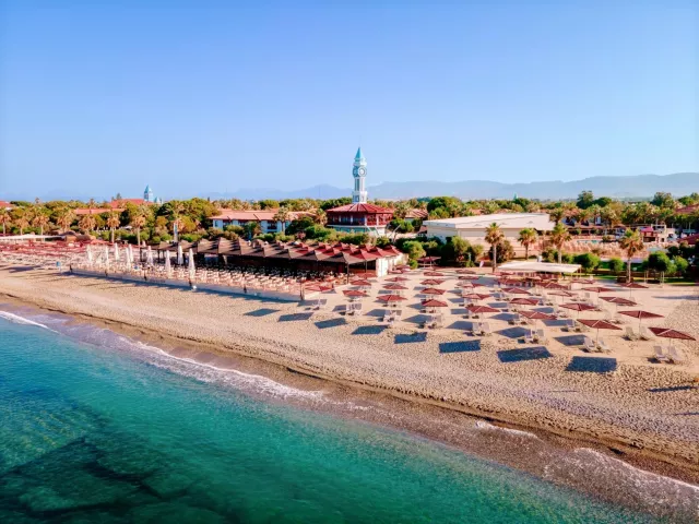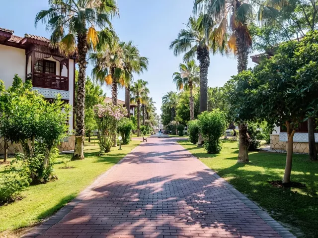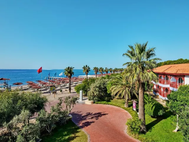 Priestranný a architektonicky zaujímavý komplex dvojposchodových budov je situovaný v udržiavanej záhrade. Najbližšie letisko Antalya sa nachádza približne 75 km od hotela, mesto Manavgat je vzdialené iba 12 km a známe stredisko Side cca 17 km. Mesto Alanya je približne 60 km ďaleko.