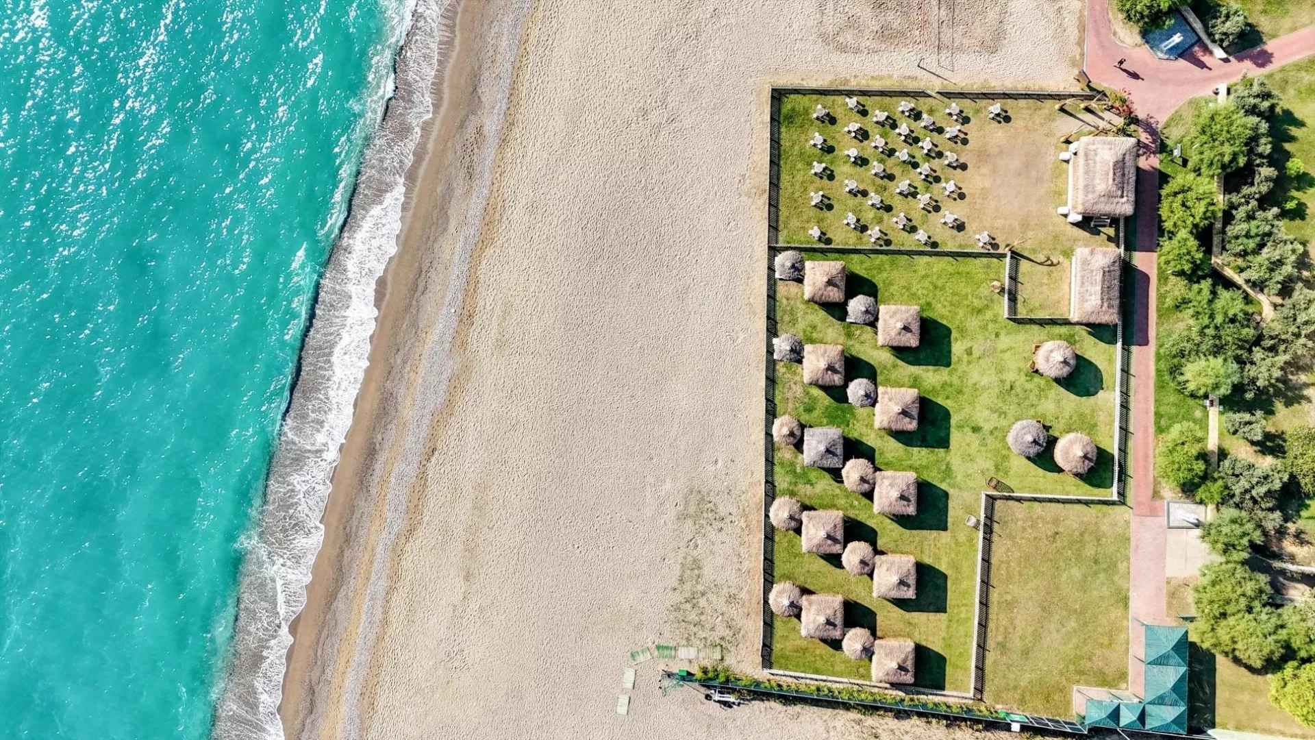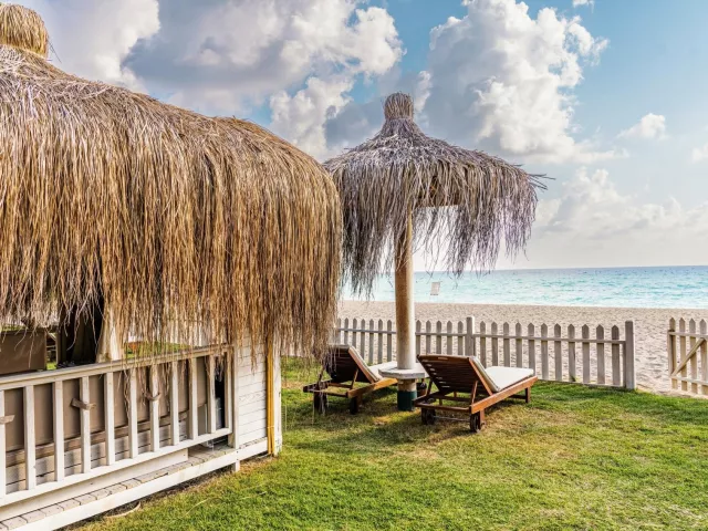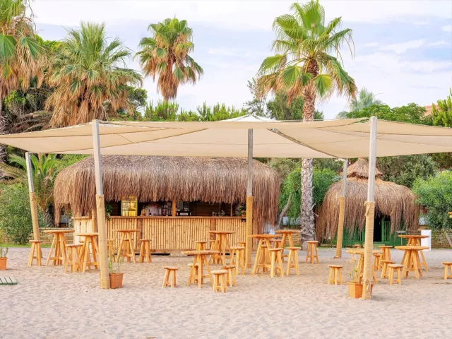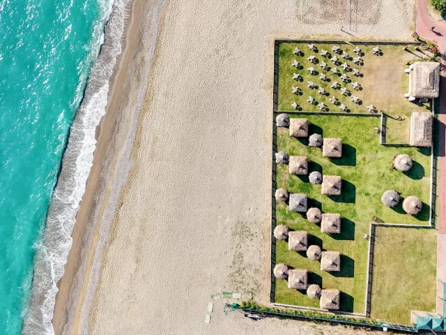 Piesočno-kamienková pláž je priamo pri hoteli. Lehátka, slnečníky a osušky sú poskytované zadarmo, zatiaľ čo pavilóny na pláži sú za poplatok.