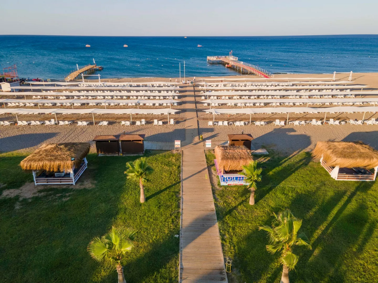 Hotel sa nachádza na prvom pobreží. Lehátka, matrace, slnečníky a plážové osušky sú k dispozícii bez poplatku. Vstup do mora je piesočnatý s kamienkami. Stany sú za poplatok.