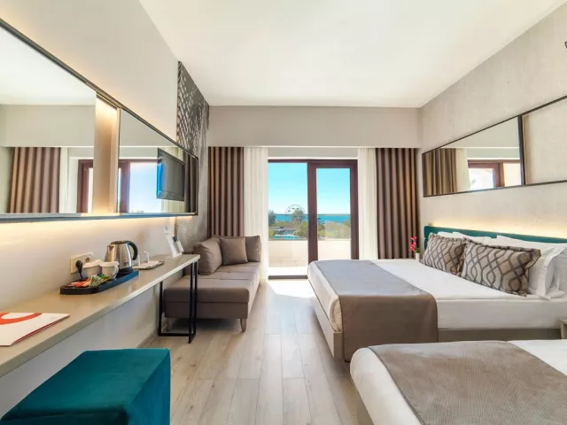 Hotel má priamy prístup na piesočnatú pláž, ktorá je ocenená Modrou vlajkou. K dispozícii sú slnečníky, ležadlá a plážové osušky zdarma, ako aj mólo pre ešte príjemnejší zážitok.