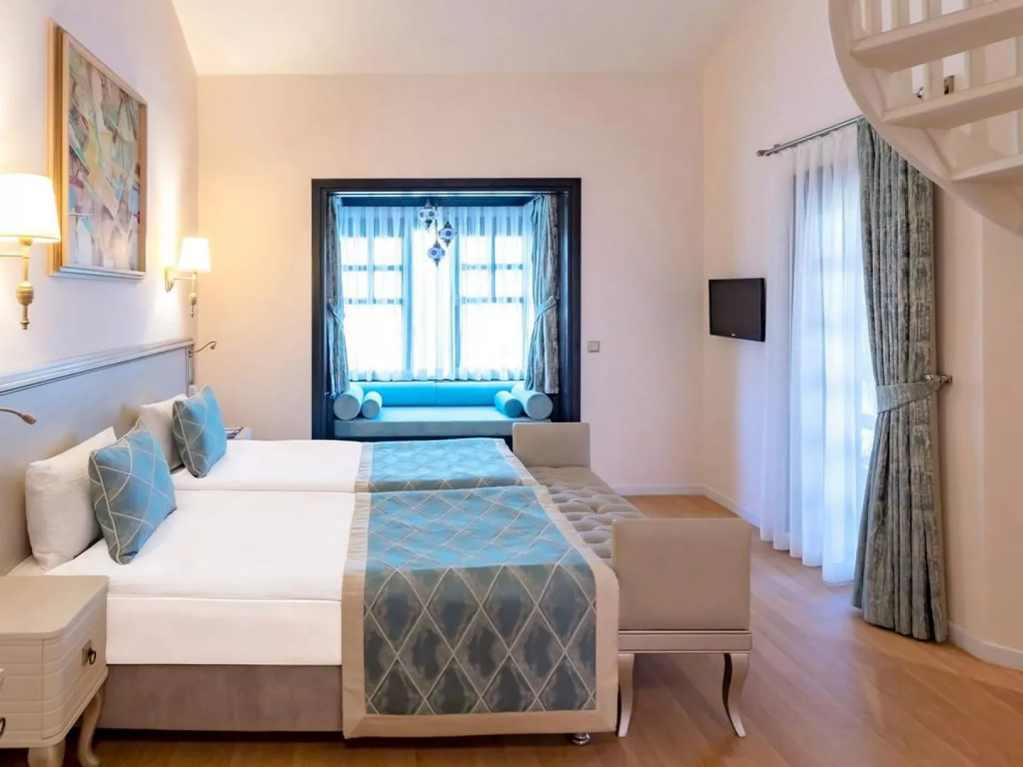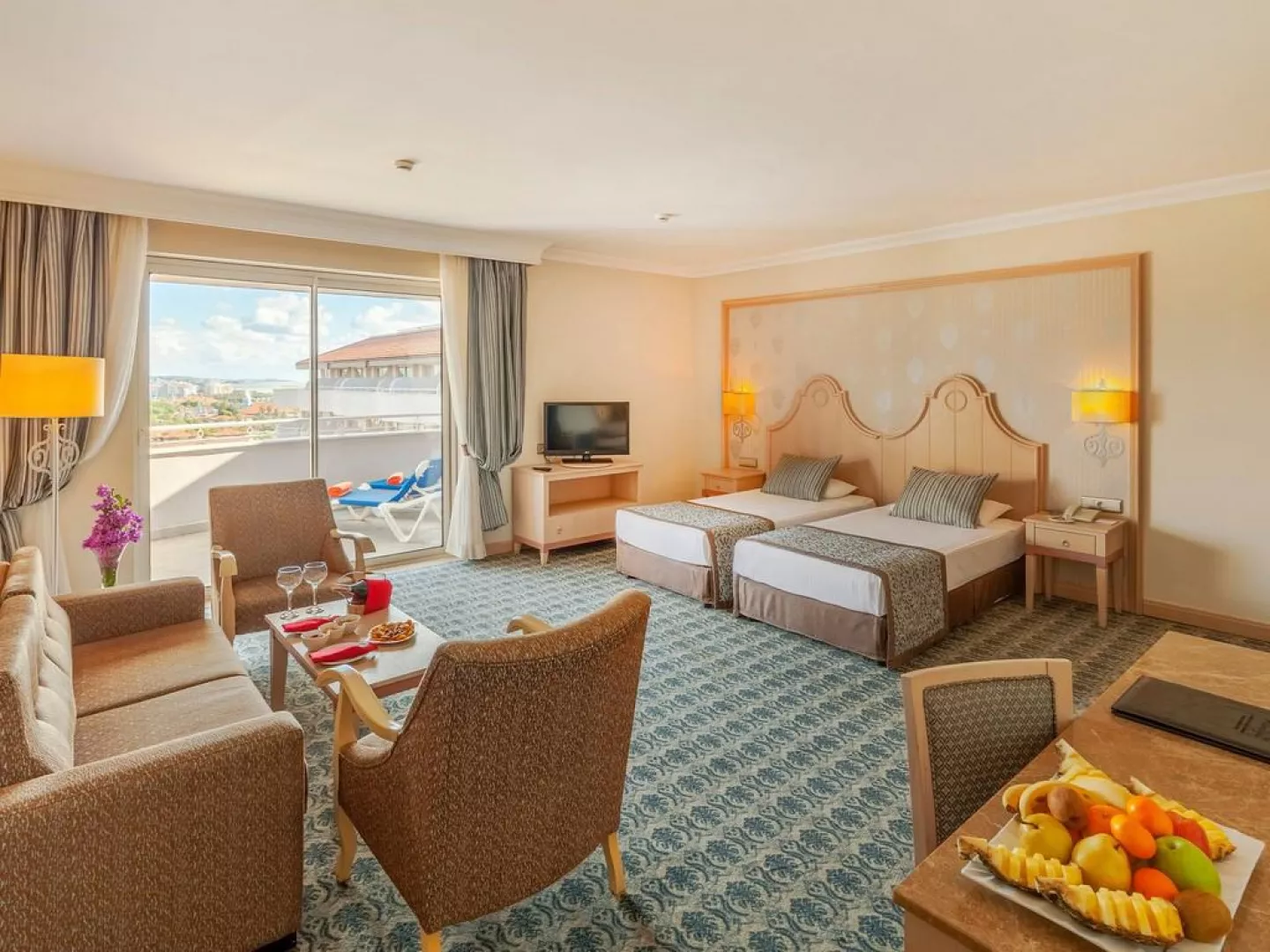 Hotel má 824 izieb, ktoré sú vybavené centrálnou klimatizáciou, LCD TV, minibarom (denne dopĺňaným nealkoholickými nápojmi), trezorom, Wi-Fi, vlastným sociálnym zariadením a balkónom. K dispozícii sú rôzne typy izieb, vrátane dvojlôžkových izieb, deluxe izieb s výhľadom na more a rodinných izieb. Vybavenie izieb zahŕňa aj set na prípravu čaju a kávy, sušič vlasov a župany.