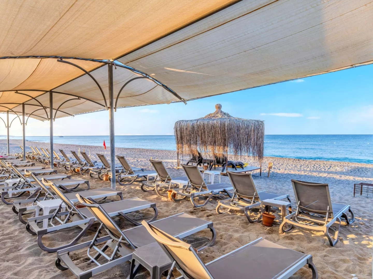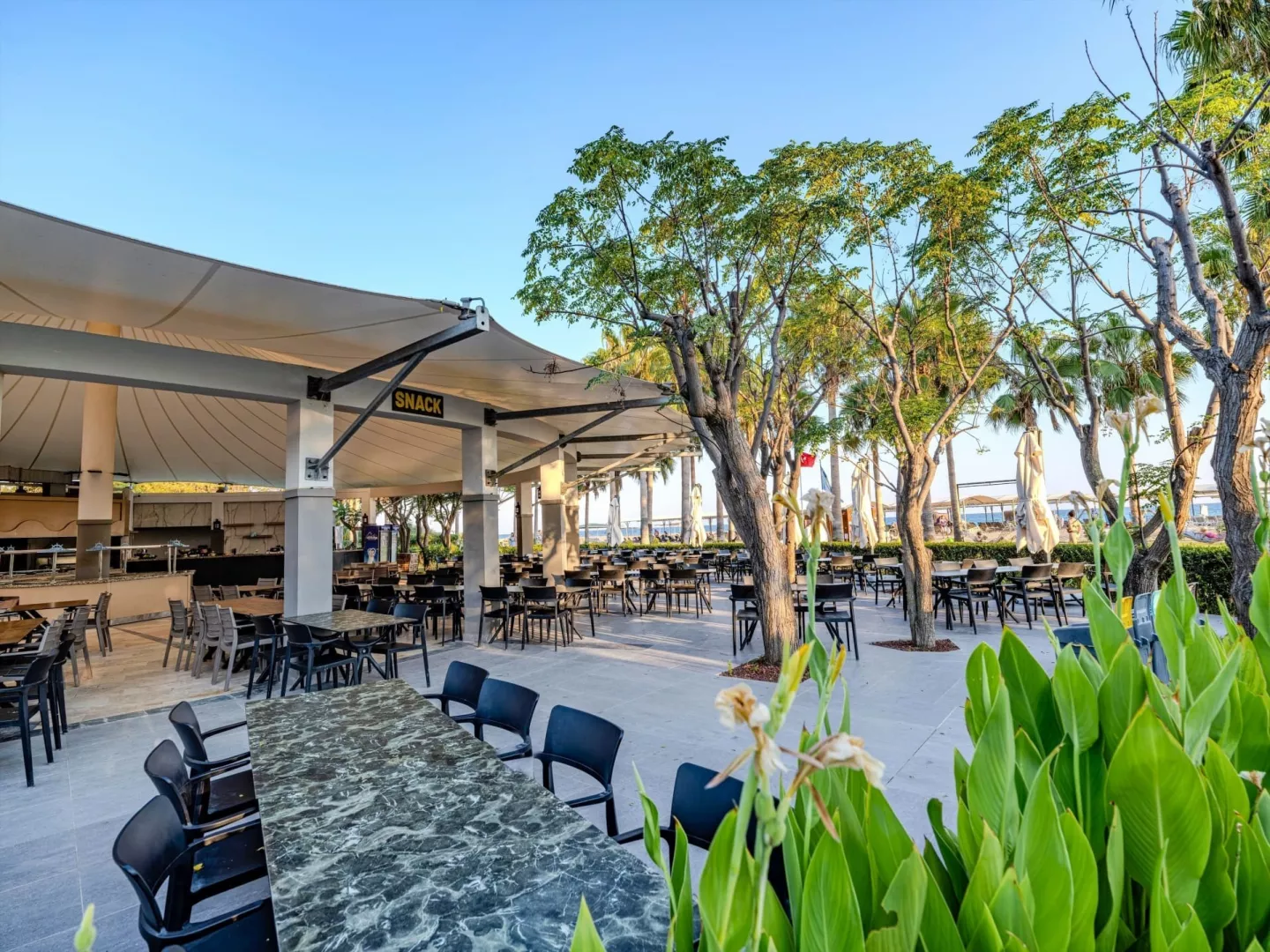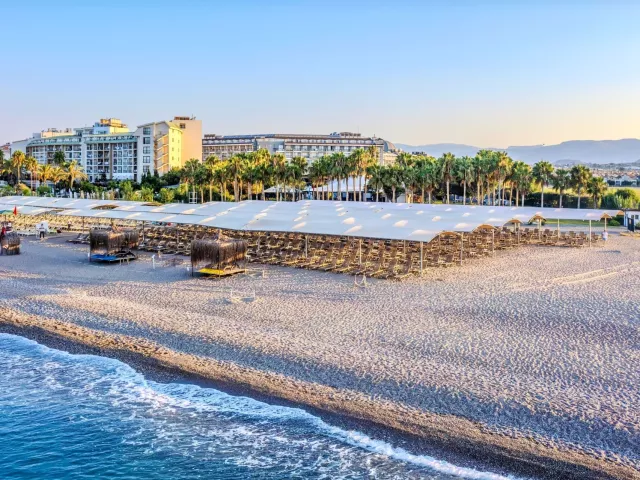 Hotel má prístup na súkromnú piesočnato-kamienkovú pláž s modrou vlajkou, kde sú k dispozícii lehátka a slnečníky zdarma. Bar na pláži ponúka služby v rámci stravovania Ultra All Inclusive.
