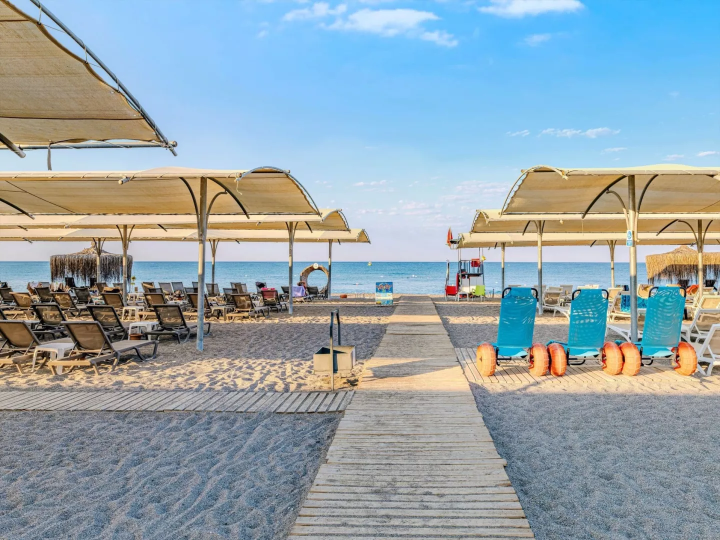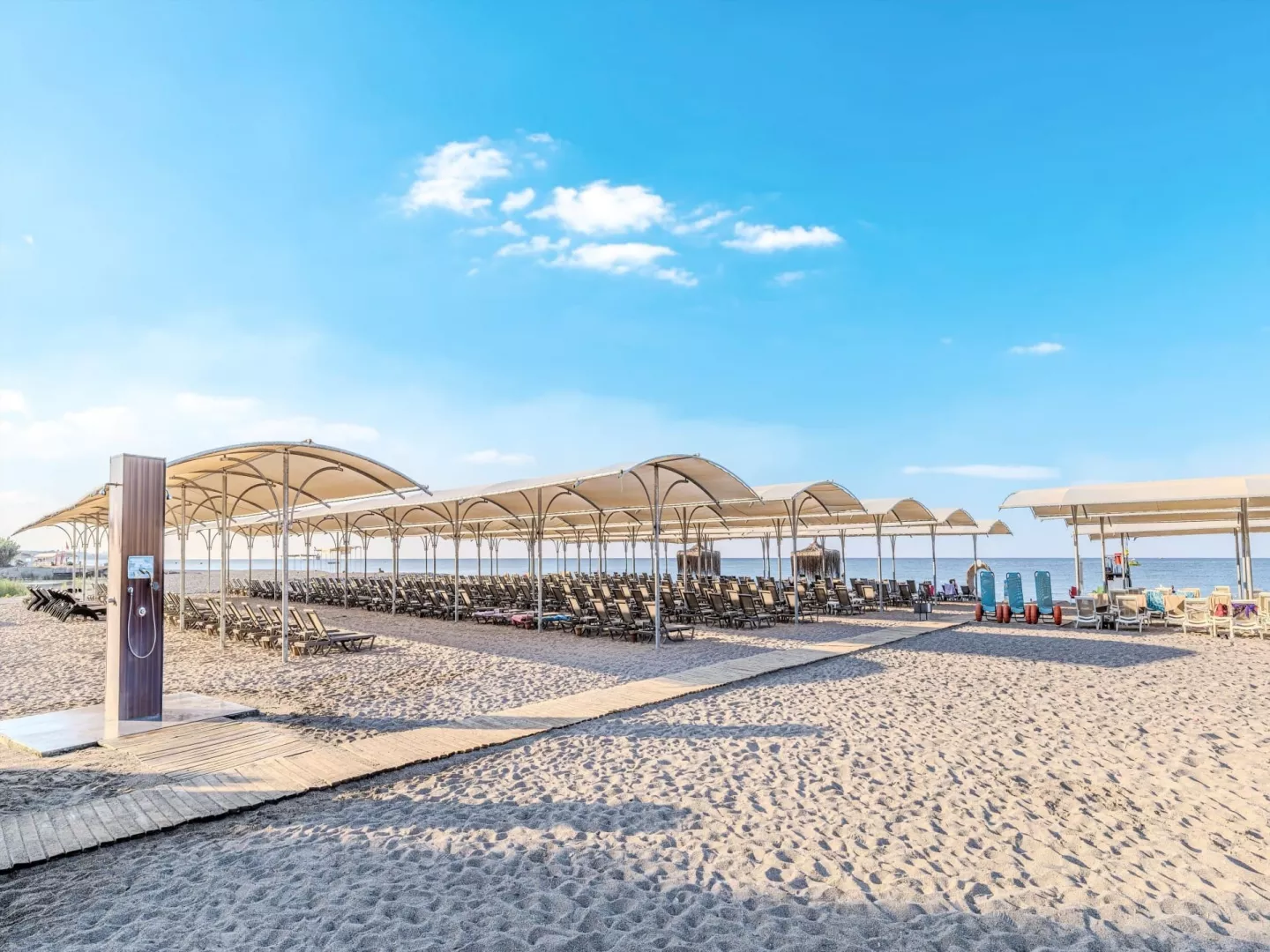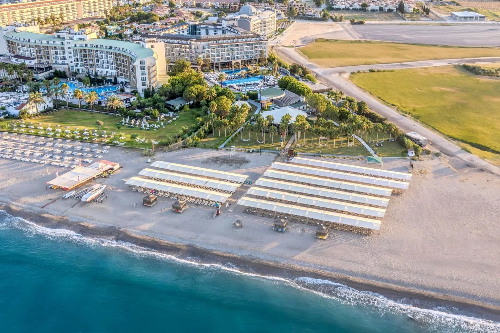 Hotel má prístup na súkromnú piesočnato-kamienkovú pláž s modrou vlajkou, kde sú k dispozícii lehátka a slnečníky zdarma. Bar na pláži ponúka služby v rámci stravovania Ultra All Inclusive.