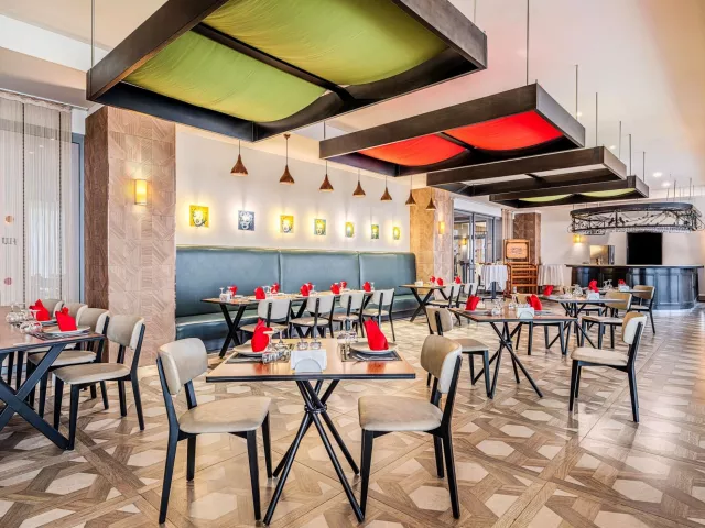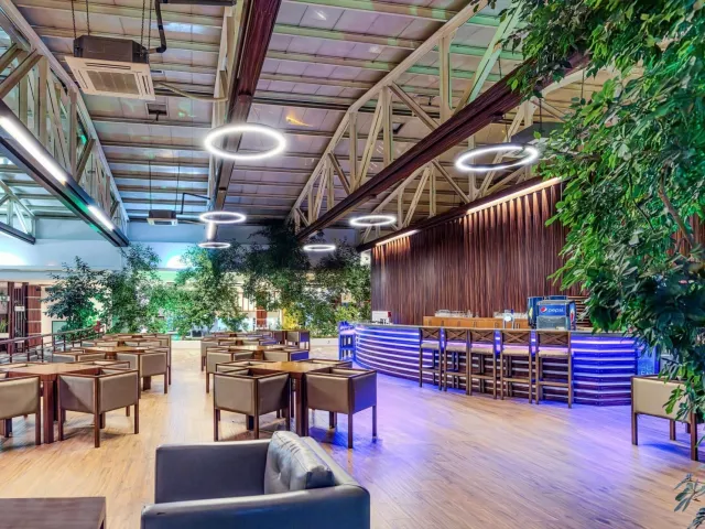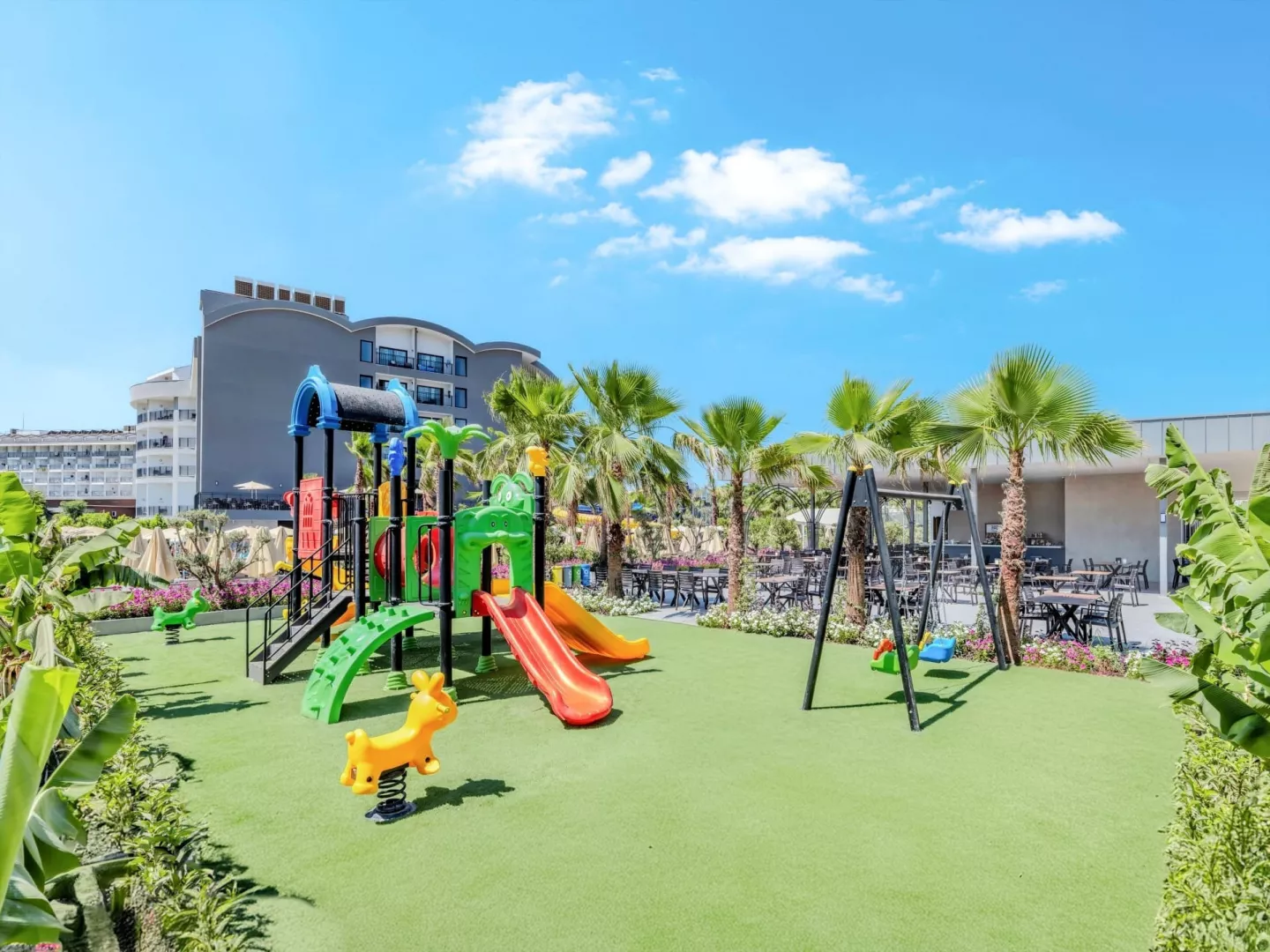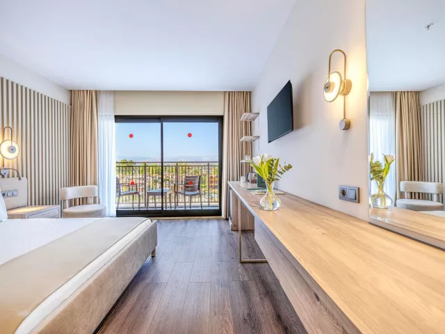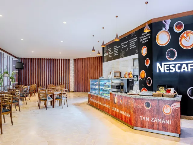 Medzi vybavením hotela nájdete bufetovú reštauráciu, á la carte reštauráciu, lobby bar, snack bar. K dispozícii sú aj bazény, mini klub a detské ihrisko. Wi-Fi pripojenie je zdarma v lobby, zatiaľ čo v izbách je za poplatok.