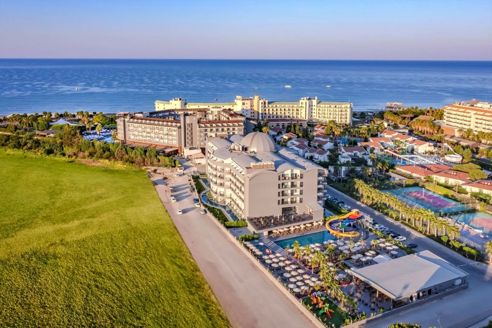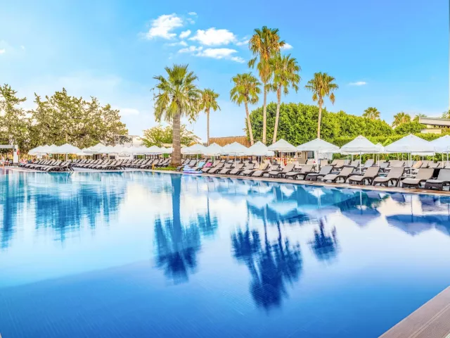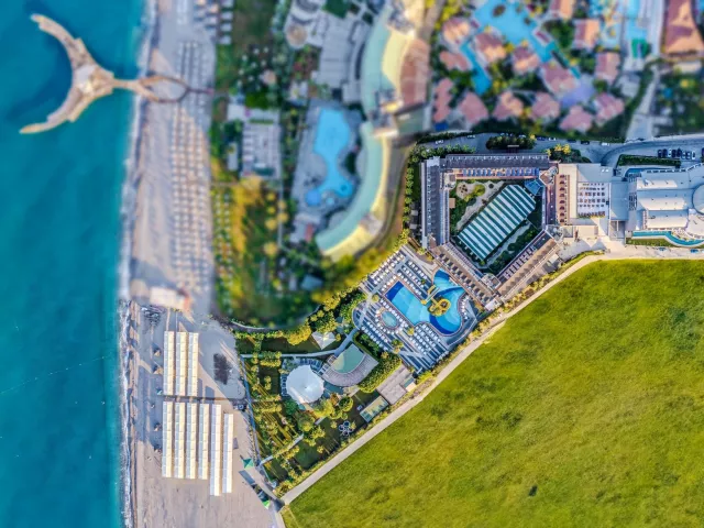 Rezort disponuje 6 poschodiami a 4 výťahmi, rozprestiera sa na ploche 40 000 m2. Vstupná hala s recepciou, nákupné možnosti, hlavná reštaurácia a 4 a la carte reštaurácie ponúkajú výnimočné kulinárske zážitky. K dispozícii sú aj 4 bary a množstvo bazénov vrátane detského bazéna a vnútorného bazéna. Ďalšie služby zahŕňajú kaderníctvo, požičovňu áut, lekárske služby a práčovňu.