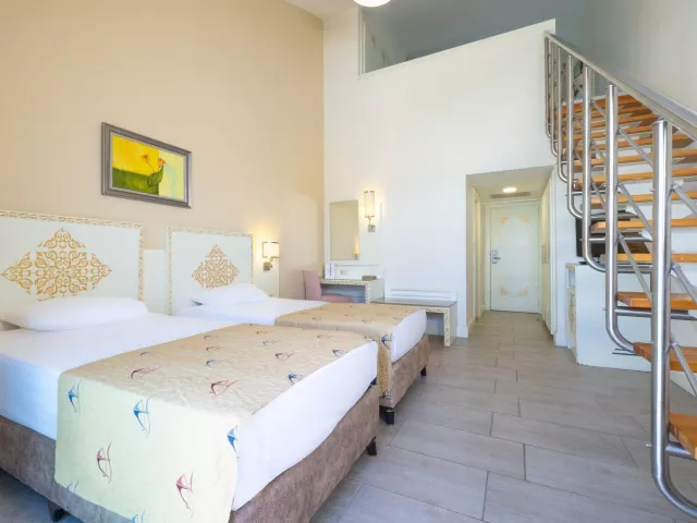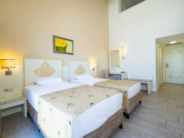 Rezort ponúka 892 komfortne zariadených izieb s balkónom, centrálnou klimatizáciou, satelitnou TV a minibarom, ktorý je denne dopĺňaný osviežujúcimi nápojmi. Rôzne typy izieb sú k dispozícii, od štandardných až po rodinné a duplex rodinné izby, vhodné pre rôzne počty osôb.