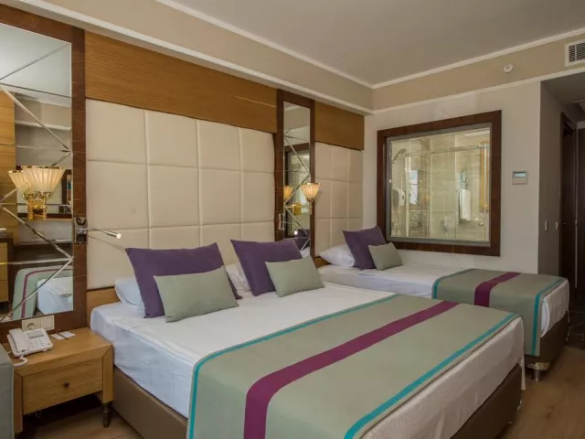 Hotel ponúka celkom 386 izieb s centrálnou klimatizáciou, SAT TV, minibarom a WiFi pripojením. Disponuje štandardnými izbami s kapacitou max pre 2+2 alebo 3+1 osoby, ako aj rodinnými izbami s oddelenými spálňami a kúpeľňami. K dispozícii sú aj ekonomické izby bez balkóna.