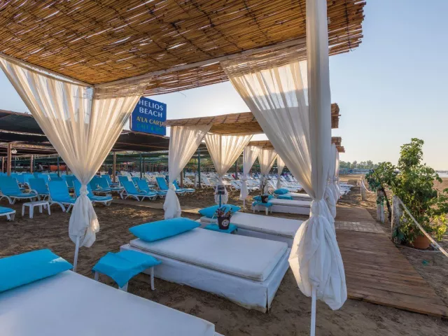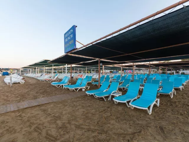 Súkromná piesočnatá pláž sa nachádza 600 m od hotela, k pláži je zabezpečená bezplatná kyvadlová doprava. Lehátka, slnečníky a matrace sú k dispozícii zdarma, plážové osušky nie sú poskytované. Vstup do mora zabezpečuje piesočnaté dno a mólo.