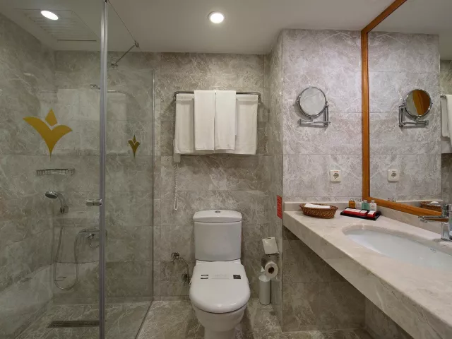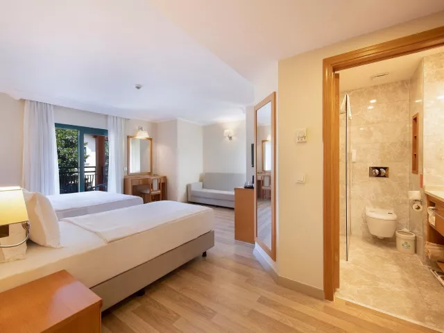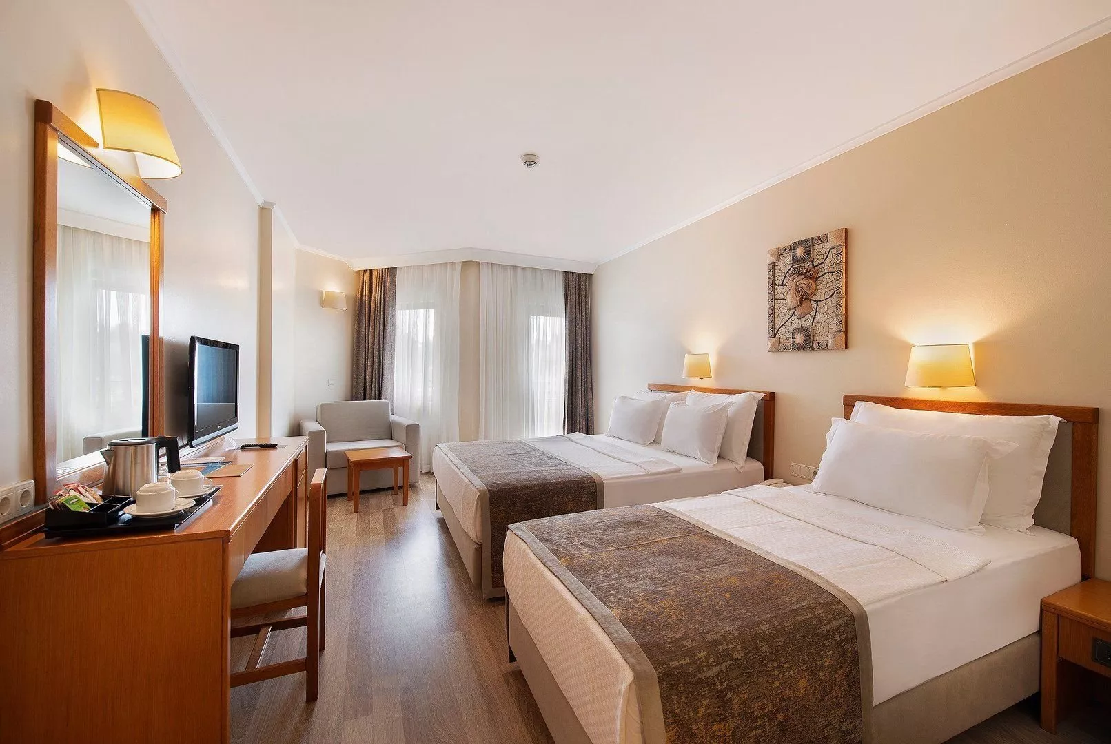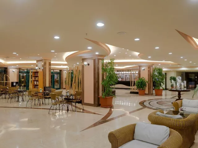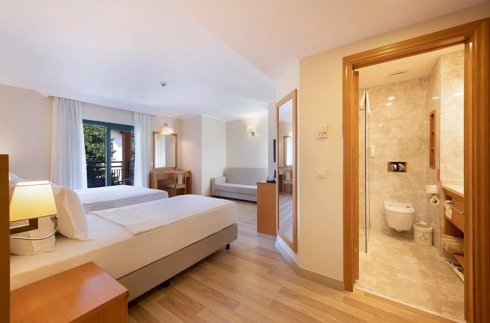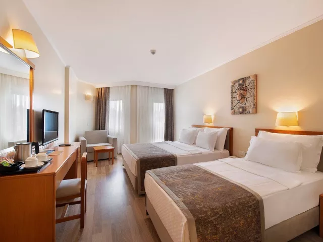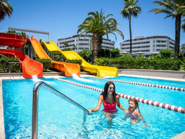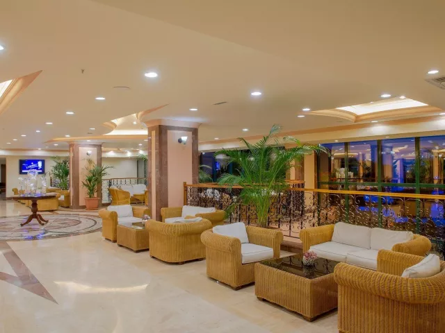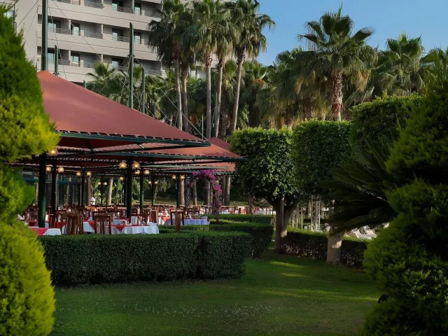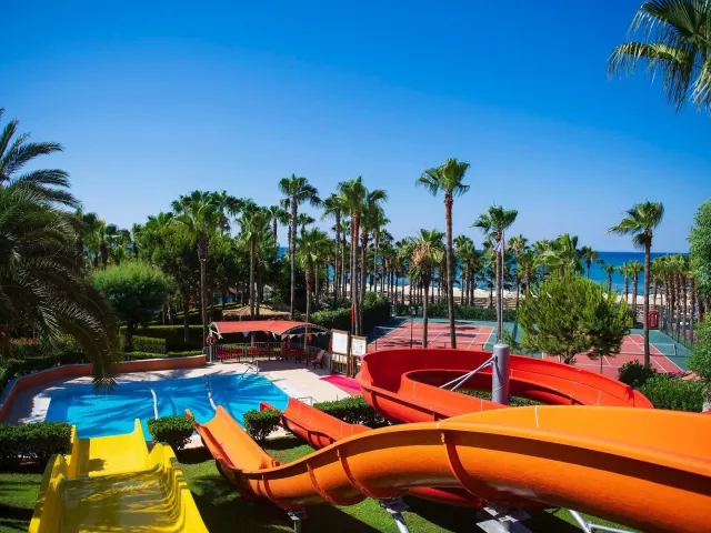 Hotel má celkom 319 izieb, vstupnú halu s recepciou otvorenou 24 hodín, hlavné reštaurácie a 5 reštaurácií à la carte. Ďalej sú k dispozícii 4 bary, vonkajšie a vnútorné bazény, tobogány, fitnes, animácie a rôzne športové aktivity ako tenis, vodný aerobik a plážový volejbal. Wellness a SPA centrum ponúka turecký kúpeľ, saunu a rôzne procedúry za príplatok.