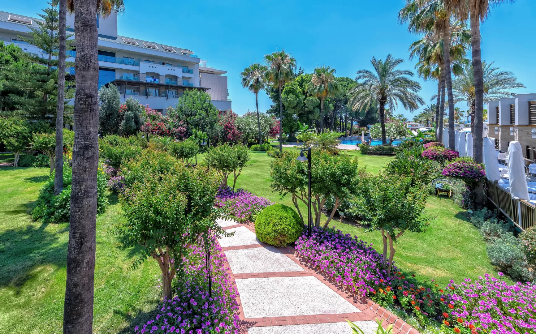 Hlavná päťposchodová budova Palma a 2 vedľajšie (2–5poschodové) budovy Flora a Rosa. Vstupná hala s recepciou v hlavnej budove, lobby bar, lobby, hlavná hotelová reštaurácia (klimatizovaná, nefajčiarska) s možnosťou stolovania na terase (s využitím fajčiarskej zóny), bar, 2 reštaurácie à la carte, bistro café, obchodná pasáž, výťahy, veľká konferenčná miestnosť, lekárska služba (v určených hodinách), herňa a bowling za poplatok. Vo veľmi dobre udržiavanej záhrade 2 sladkovodné bazény (1 z nich so šmykľavkami využívaný na denné vodné športové animácie), detský bazén pre najmenších (sladkovodný) s malou šmykľavkou. Lehátka, podložky a slnečníky pri bazéne zadarmo, osušky za kauciu (výmena zadarmo), sprchy.