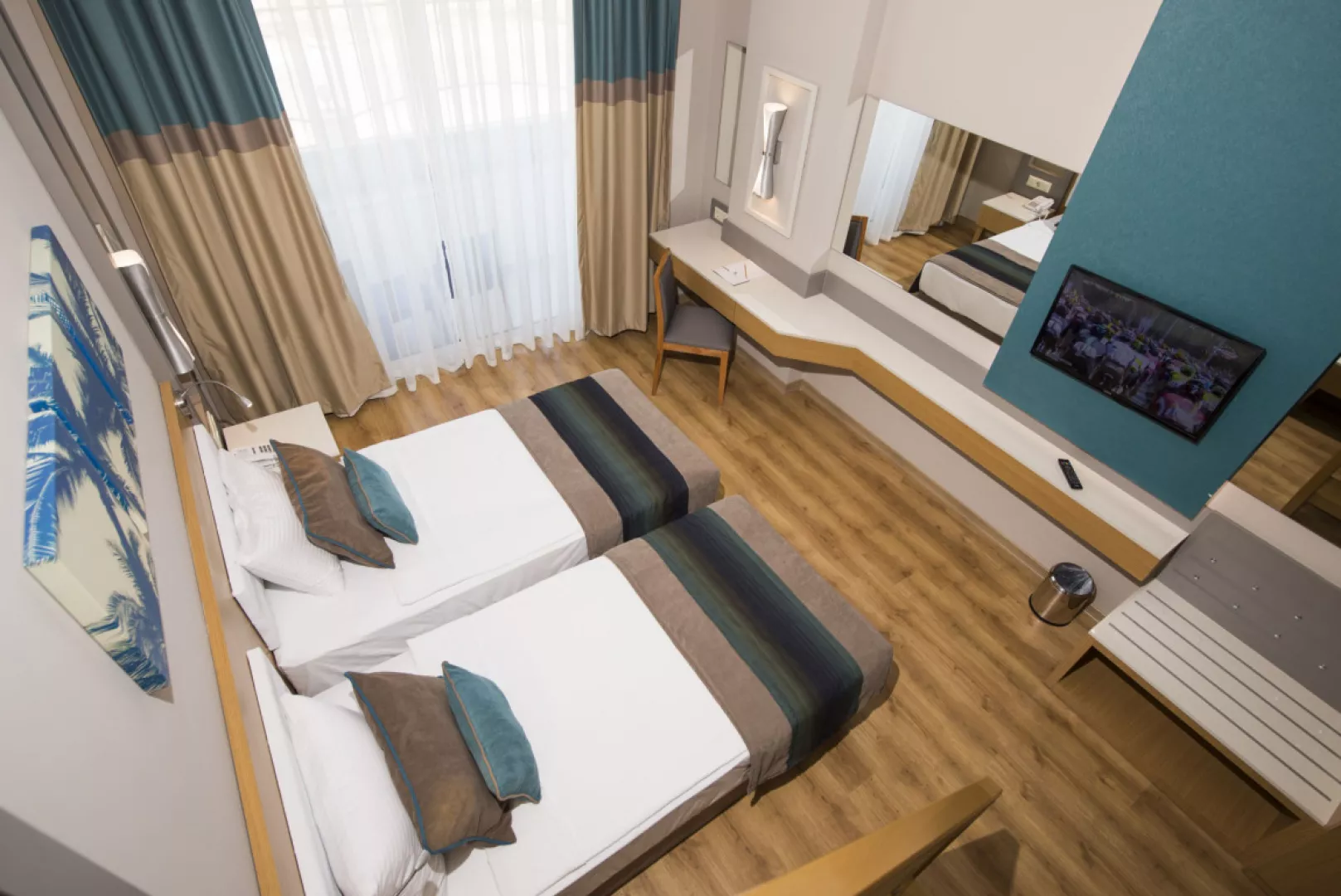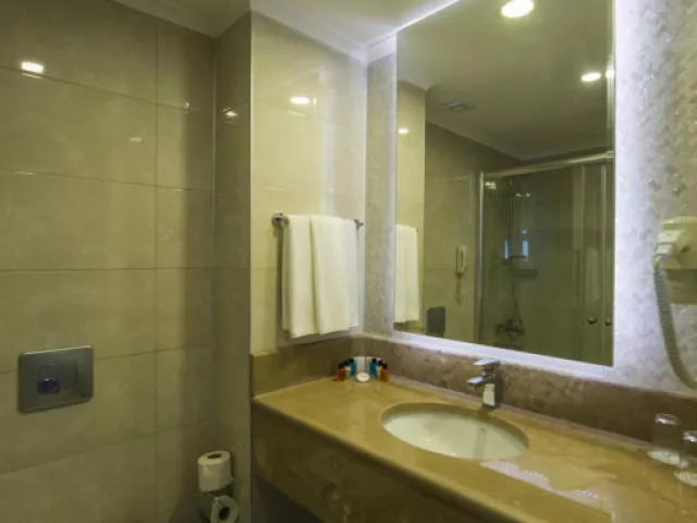 Hotel disponuje priestrannými a moderne zariadenými izbami, ktoré sú vybavené všetkým potrebným pre pohodlný pobyt. V izbách sú k dispozícii klimatizácia, minibar, TV a služba na prípravu čaju a kávy.