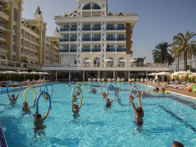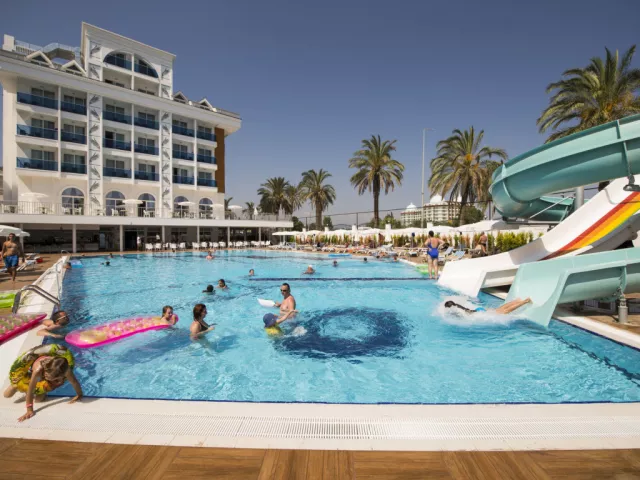 Palm World Resort SPA sa nachádza v malebnej lokalite Kumkoy, blízko historického mesta Side. Tento hotel ponúka ideálne prostredie pre tých, ktorí hľadajú kombináciu relaxu a zábavy pri mori.
