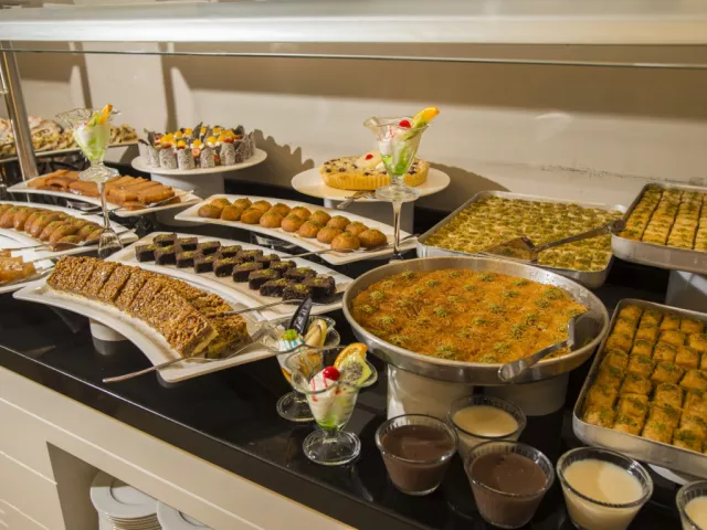 Reštaurácie v Palm World Resort ponúkajú rôzne gastronomické zážitky s bohatou ponukou medzinárodnej kuchyne. K dispozícii sú aj tematické večere a občerstvenie po celý deň.