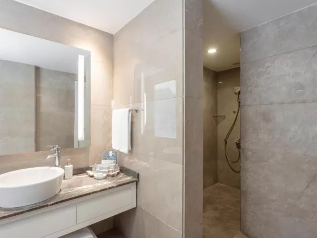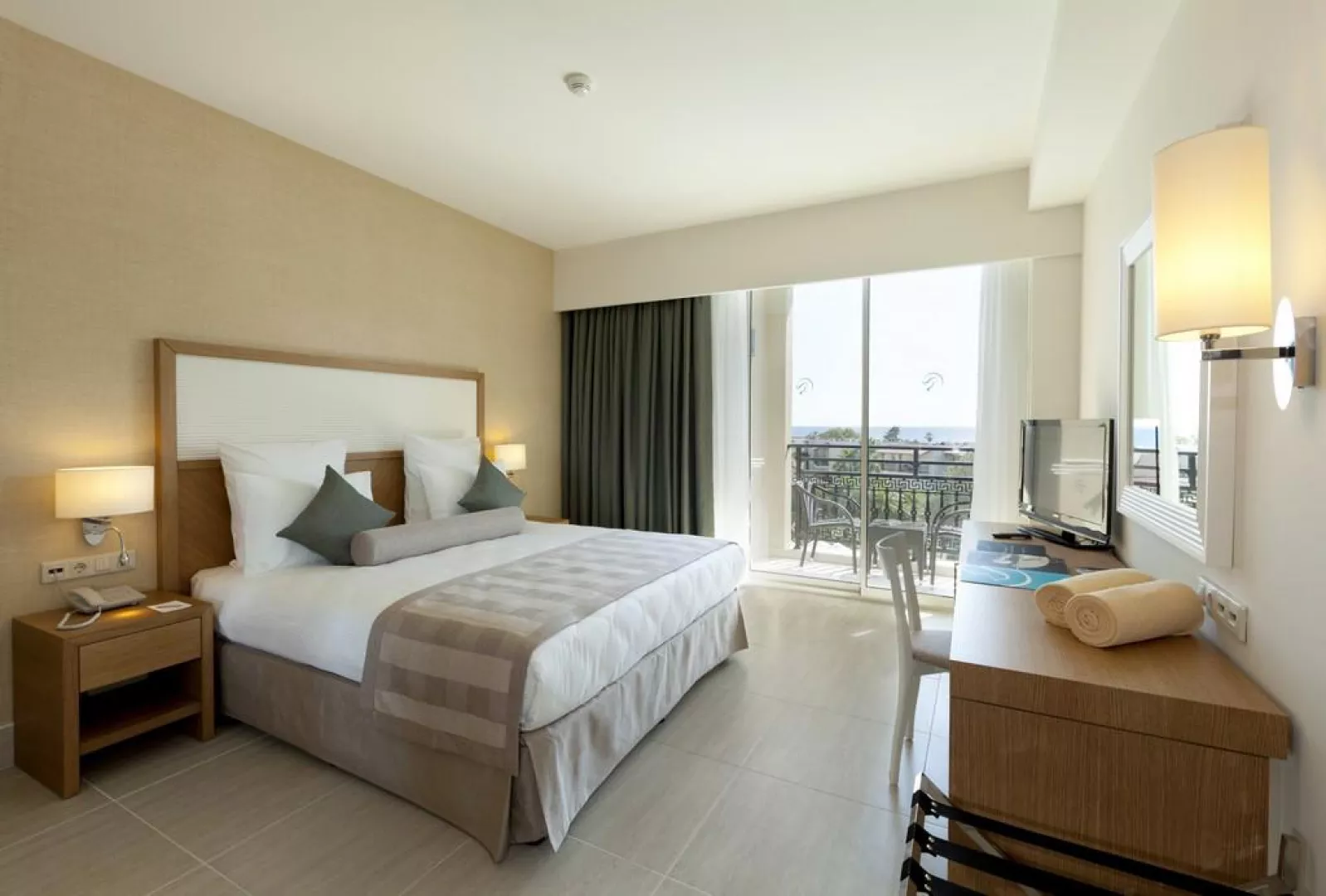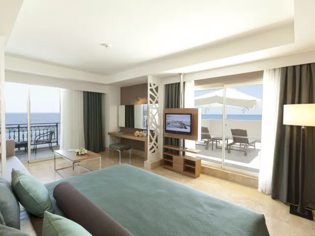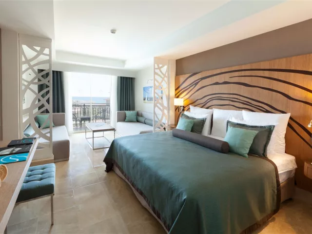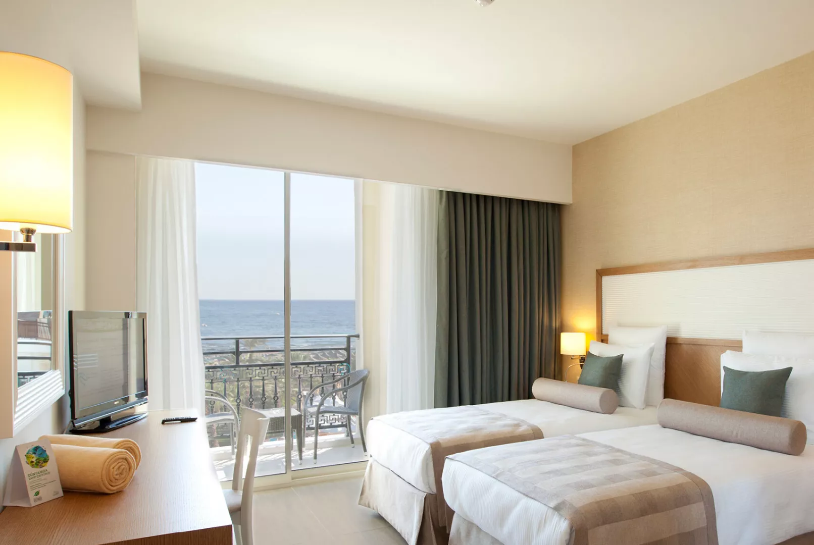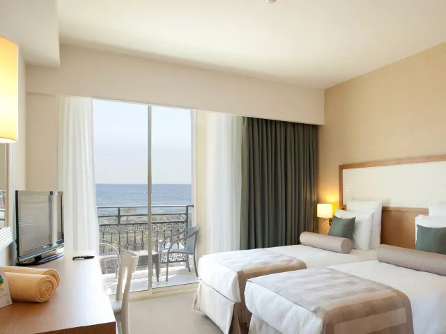 Izby sú vybavené kúpeľňou so sprchou, klimatizáciou, TV/SAT, minibarom (s denné doplnením vody a nealkoholickými nápojmi), trezorom (zdarma) a balkónom. Voľba zahŕňa rôzne typy izieb, vrátane dvojlôžkových izieb s výhľadom na more a rodinných suít. Dvojlôžkové izby sú dostupné na vyžiadanie pre osoby s obmedzenou mobilitou.