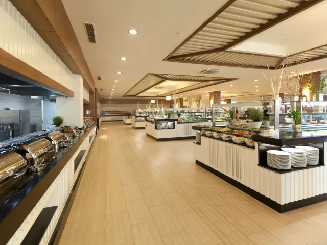 Ultra all inclusive program ponúka raňajky, obedy a večere formou bufetu s čerstvým pomarančovým džúsom pri raňajkách. Hostia si môžu dopriať rôzne snacky počas dňa vrátane zákuskov a zmrzliny.