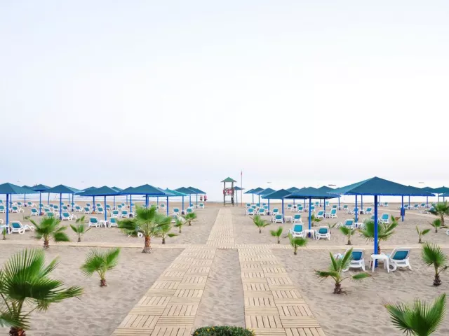 Hotel sa môže pochváliť krásnou piesočnatou plážou priamo pred hotelom, kde si môžu všetci vychutnávať bezplatné slnečníky, lehátka a osušky. Kabany a vodné športy sú k dispozícii za poplatok.