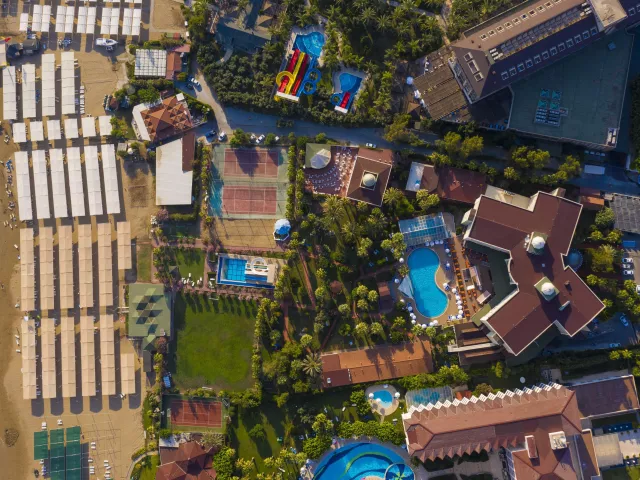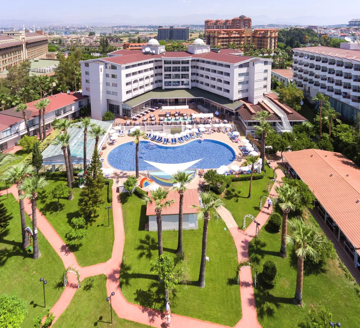 vstupná hala s recepciou, hlavná reštaurácia, snack bar, lobby bar, plážový bar, diskotéka, internetová kaviareň (za poplatok), obchodná galéria, vonkajší bazén, krytý bazén, detský bazén, tobogány, wellness, sauna, masáže, detský klub, detské ihrisko, animačné programy, tenisové kurty, stolný tenis, plážový volejbal, šípky, stolný futbal. Ležadlá a slnečníky pri bazéne a na pláži ZADARMO.