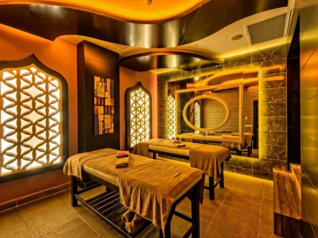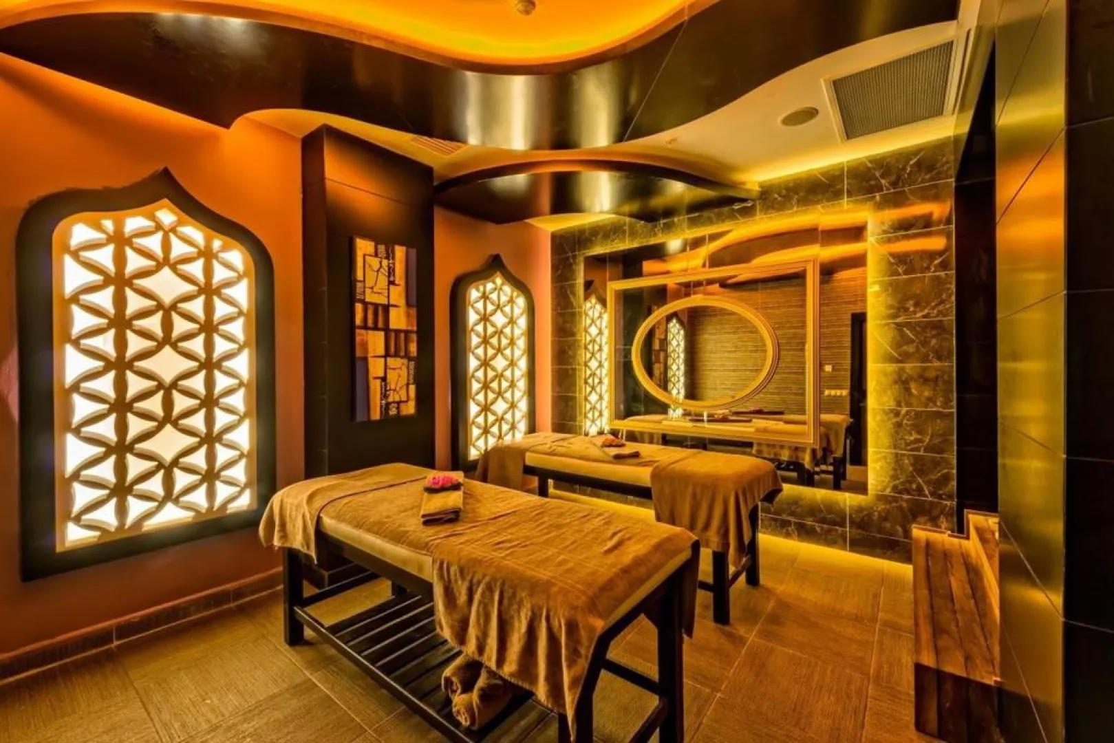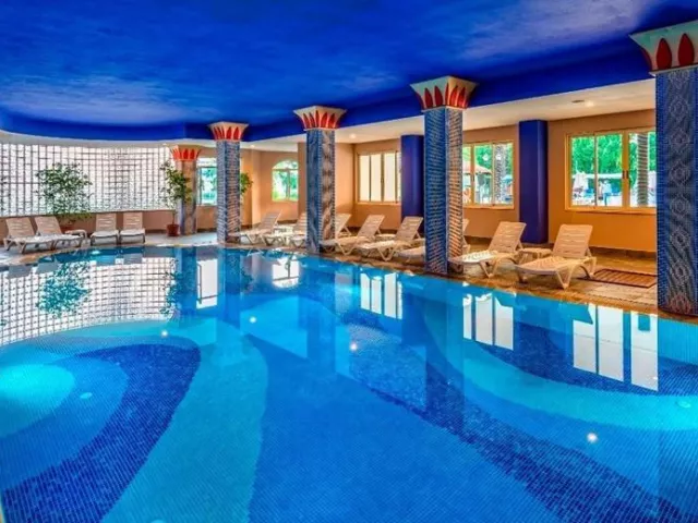 SLUŽBY: bazény so slnečníkmi a ležadlami • vnútorný bazén • relax bazén • tobogany • hlavná reštaurácia • lobby bar • pool bar • beach bar • soft animačný program • stolný tenis • vodné hry • vodné pólo • boccia • šípky • volejbal • turecký kúpeľ • za poplatok: SPA centrum • procedúry tureckého kúpeľa • obchody • lekárska služba • práčovňa • herňa • biliard • wifi