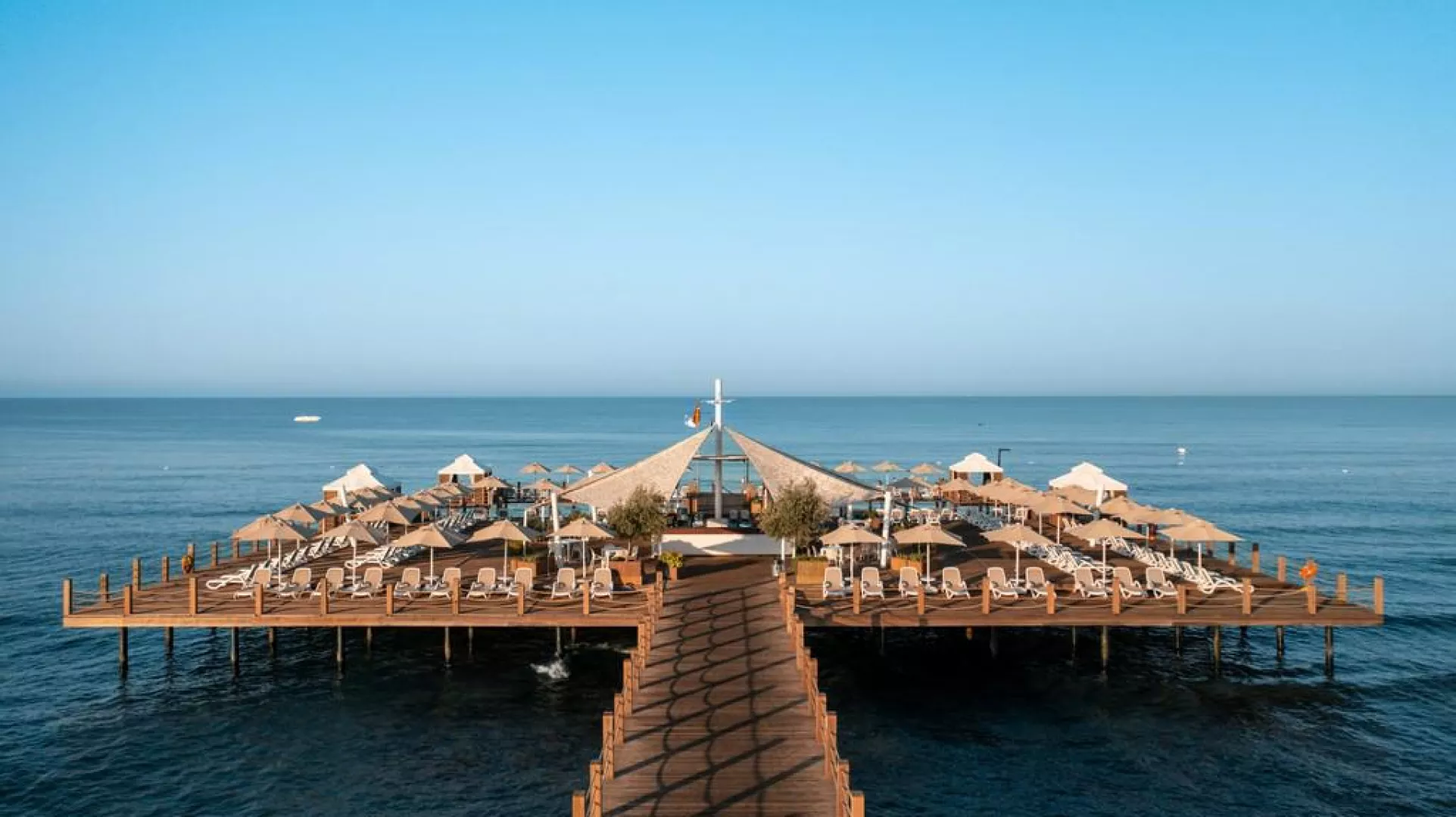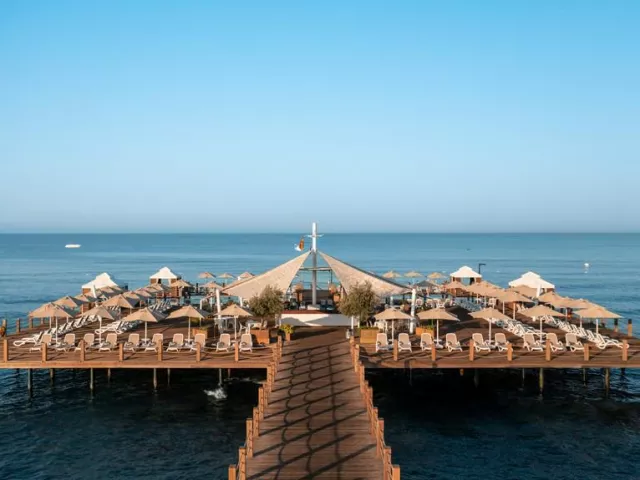 Nádherná piesočnatá pláž s mólom sa nachádza len 150 m od hotela. Na pláži je k dispozícii plážový servis, vrátane ležadiel, slnečníkov, matracov, osušiek a plážového baru (10:00 - 18:00) bez poplatku. Na pláž premáva shuttle bus medzi 10:00 a 18:00. Vodné športy sú spoplatnené.