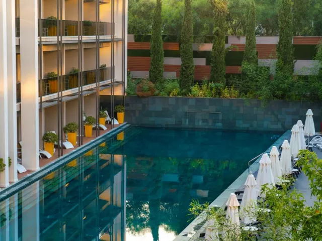 Izby sú 2-lôžkové štandardné s možnosťou prístelky (26 m2), junior suity (37 m2, max. 2+1), suity (48 m2, max. 2+1), swim up izby s priamym vstupom do bazéna (26 m2, max. 2+1) a rodinné dublex izby (45 m2, max. 4+1). Vybavenie izieb zahŕňa centrálne klimatizáciu, kúpeľňu, vaňu alebo sprchu, sušič na vlasy, LCD TV, trezor, minibar (naplnený pri príchode nealkoholickými nápojmi, denne dopĺňaný vodou), set na kávu a čaj a balkón.