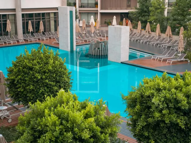 Hotel má 5-poschodovú hlavnú budovu s 374 izbami. K dispozícii je lobby s WiFi, hlavná reštaurácia, tri á la carte reštaurácie (turecká, talianska, rybia), štyri bary, tri vonkajšie bazény, vnútorný bazén a dve tobogany. Tento rezort ponúka aj denné a večerné animácie, večerné show, živú hudbu, miniklub pre deti vo veku 4-12 rokov, fitnes, aerobik, vodné pólo, plážový volejbal, stolný tenis, šípky a biliard. Turecké kúpele a sauna sú k dispozícii, pričom masáže, peeling, salón krásy, joga, pilates, kaderník, obchody, futbal, požičovňa áut a bicyklov, práčovňa a lekár sú za poplatok.