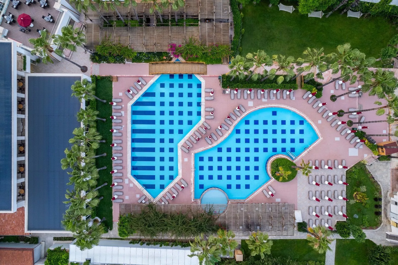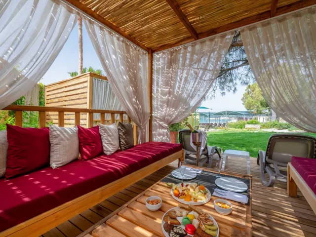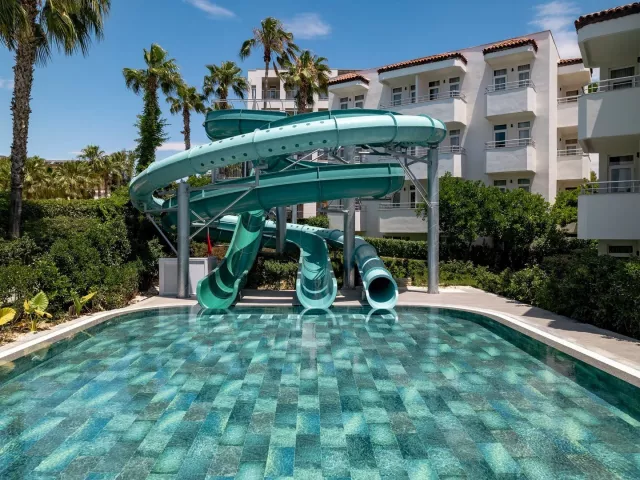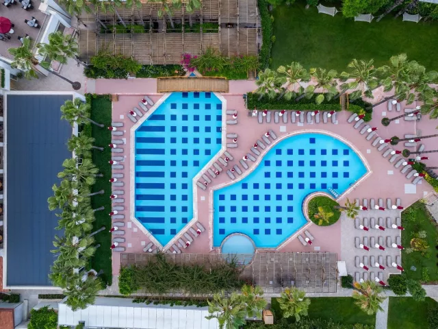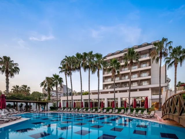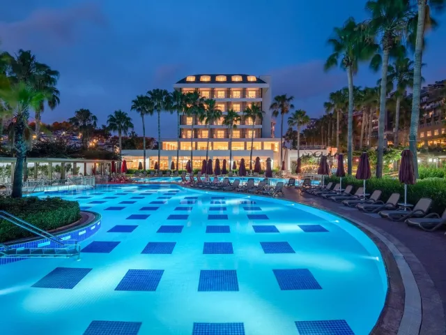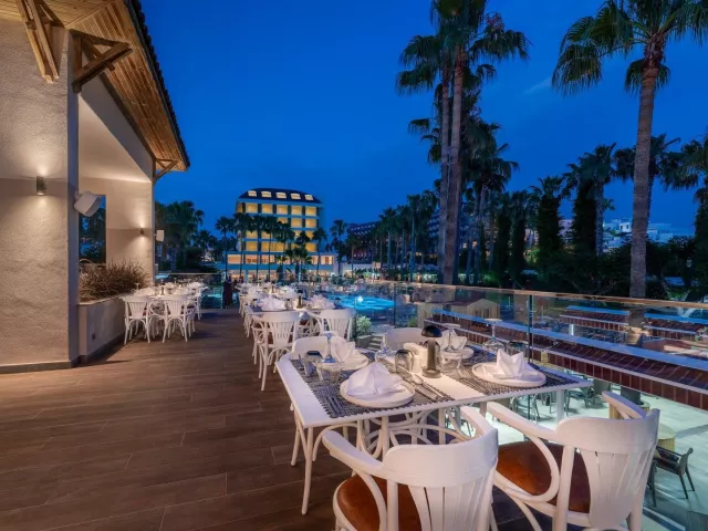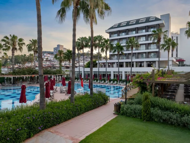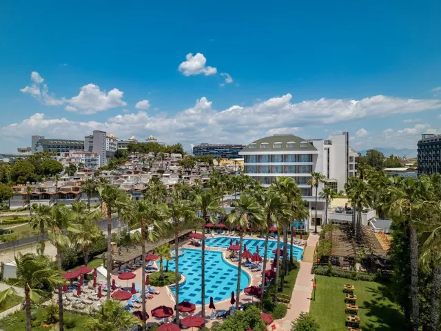 Hotelový komplex sa nachádza v udržiavanej záhrade priamo pri pláži, približne 4,5 km od historického centra Side a asi 60 km od letiska.