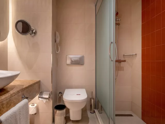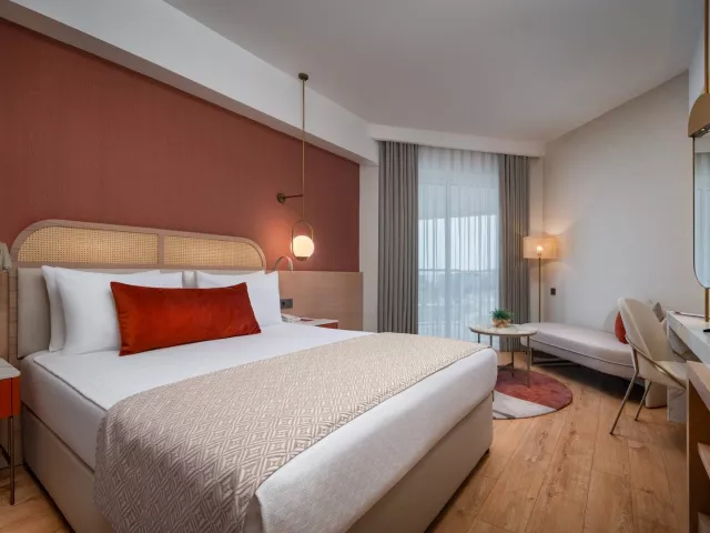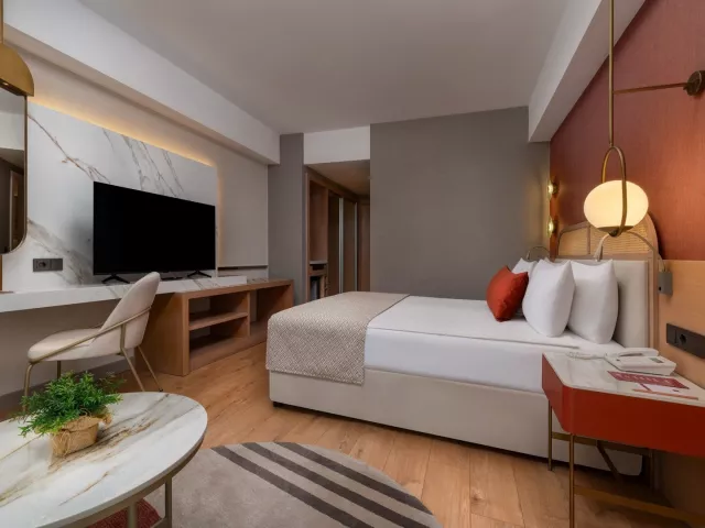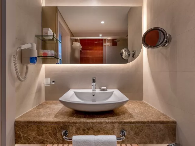 Izby sú vybavené vlastným sociálnym zariadením (kúpeľňa, sušič vlasov, WC), centrálnou klimatizáciou, SAT/TV, telefónom, minibarom, setom na prípravu kávy a čaju a balkónom alebo terasou. Za poplatok je k dispozícii trezor. Môžete si zvoliť aj izby v hlavnej budove, vzdialenej približne 110 m od vedľajšej budovy.