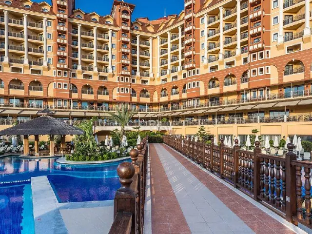 Hotel disponuje 334 izbami v 7-podlažnej budove s moderným vybavením. Medzi služby patrí recepcia, lobby bar, hlavná reštaurácia a tri á la carte reštaurácie, kaviareň, minimarket, knižnica a diskotéka. Na relaxáciu sú k dispozícii 4 bazény (dva vonkajšie a jeden vnútorný) a detský bazén s vyhrievanou vodou, ako aj šmykľavky. V areáli sa nachádza aj wellness centrum a fitness miesto. Bezplatné WiFi pripojenie je dostupné vo všetkých priestoroch hotela okrem pláže.