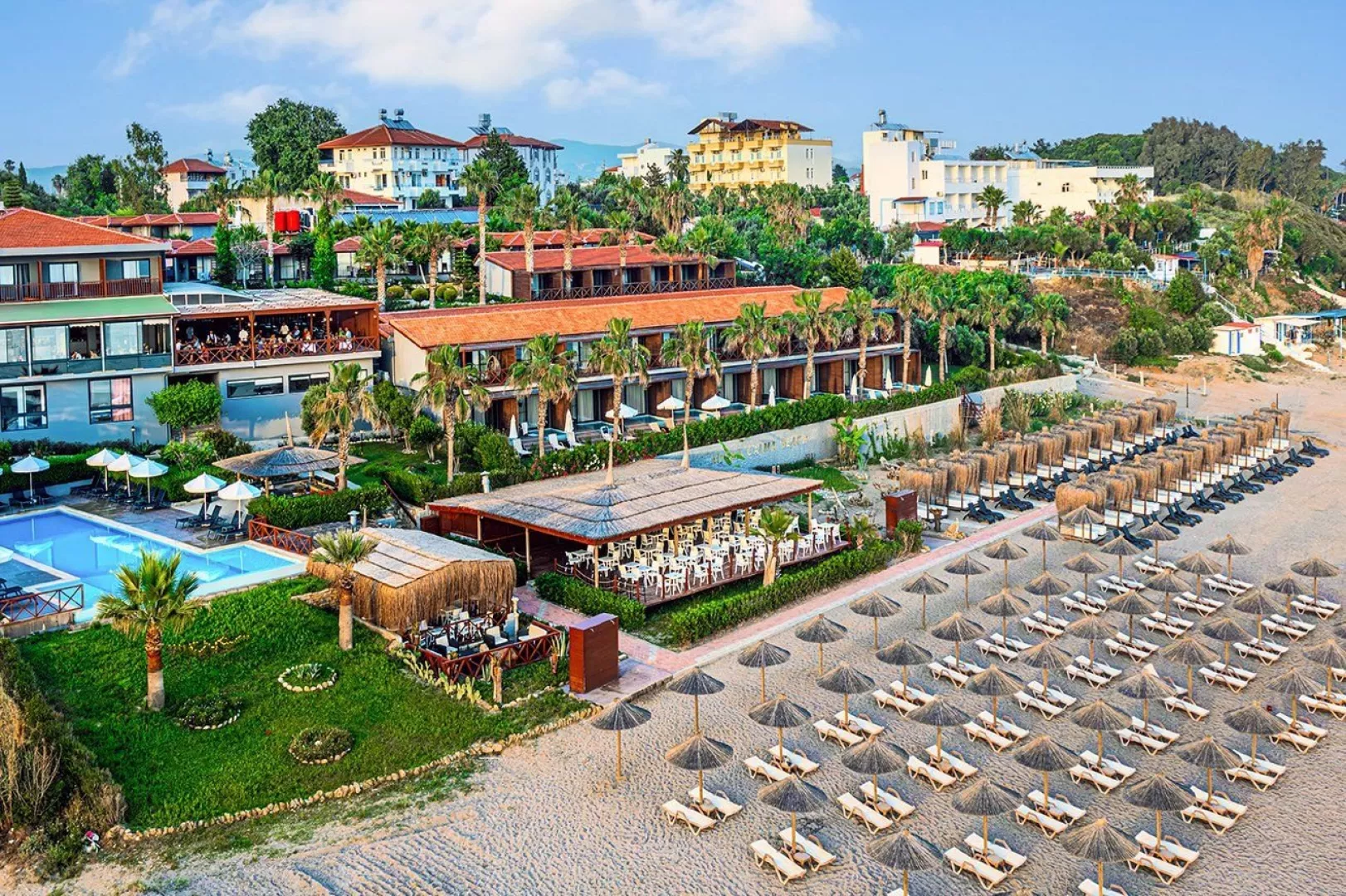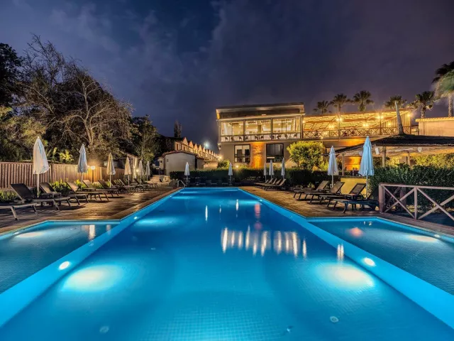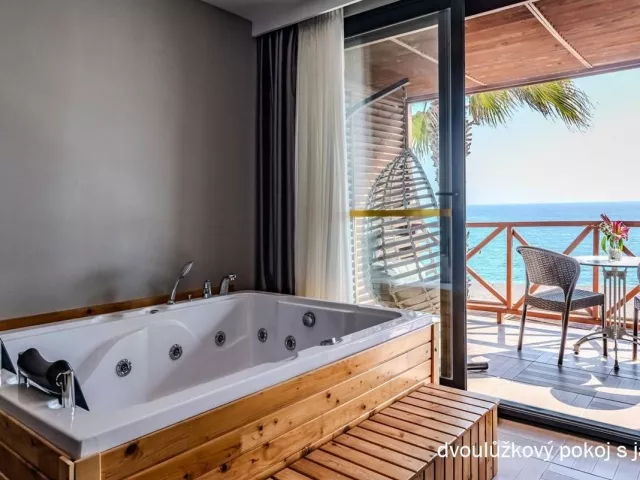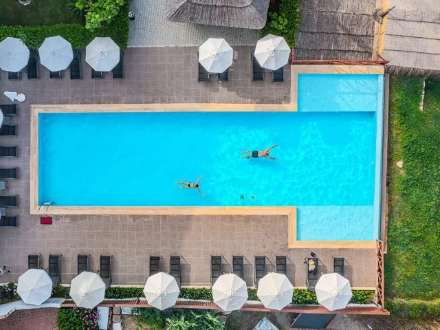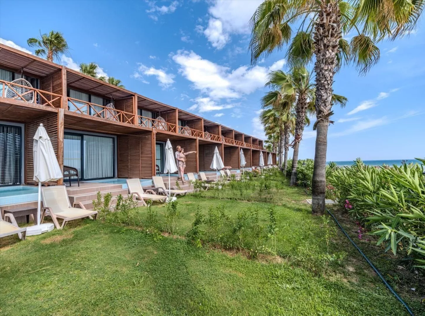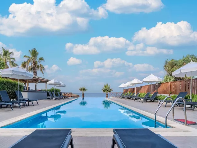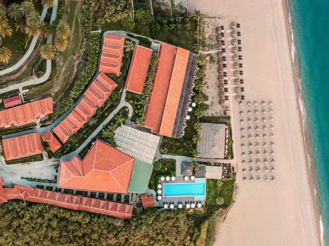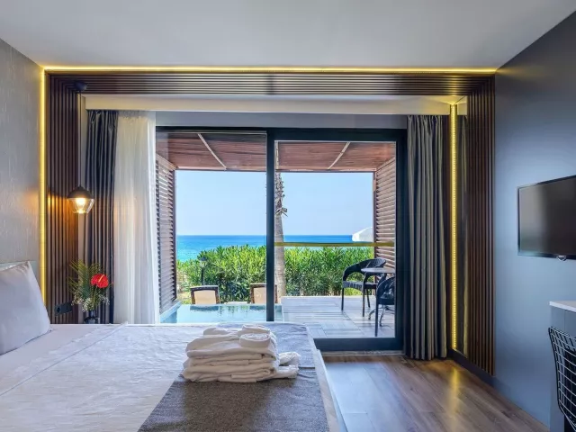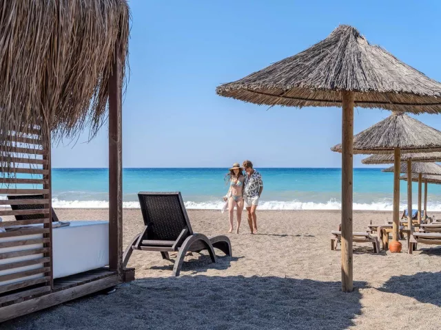Hotelová pláž je súkromná, s piesočnatým a okruhliakovým povrchom. K dispozícii sú ležadlá a slnečníky zdarma, plážový bar a pavilóny na pláži. Izby s vlastným bazénom a jacuzzi poskytujú extra pohodlie.