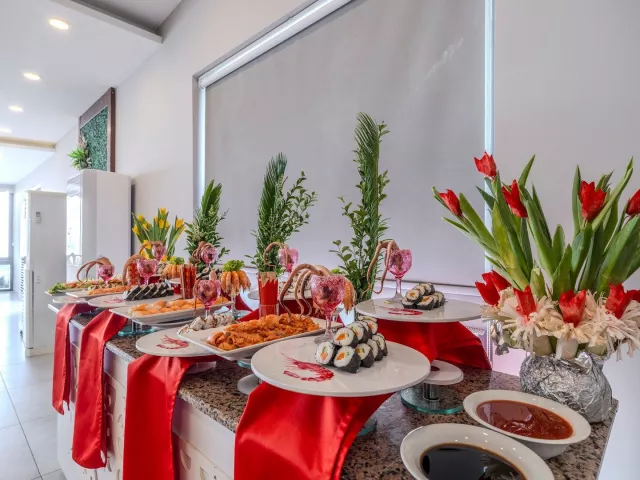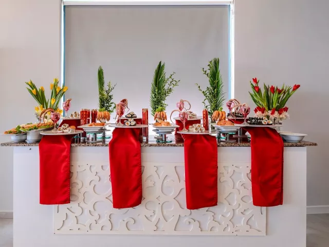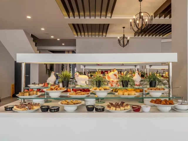 Hotel ponúka stravovanie formou all inclusive, ktoré zahŕňa raňajky, obedy a večere formou bufetu, popoludňajšiu kávu, zákusky, snacky a zmrzlinu. Nealkoholické a alkoholické nápoje miestnej výroby sú k dispozícii v určených časoch.