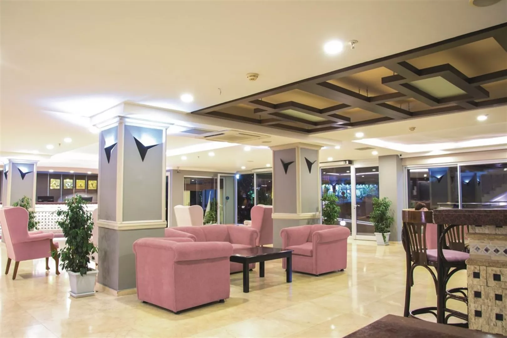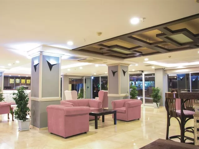 vstupná hala s recepciou a posedením • hlavná hotelová reštaurácia • 2 bary • vonkajší bazén so šmykľavkou • detský bazén • vnútorný bazén • SPA a wellness centrum • turecké kúpele, sauna a masáže • fitness centrum • biliard • šípky • stolný tenis • plážový volejbal • aerobik • hotelový lekár • kaderníctvo • disco • detské ihrisko • ponuka rôznych vodných športov na pláži • medzinárodné hotelové animácie • wifi v lobby (zdarma)
