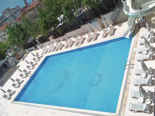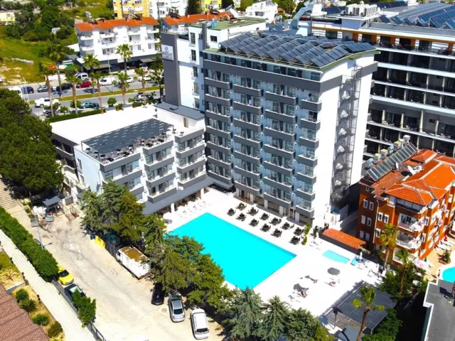 mestský hotel 450 metrov od piesočnatej pláže (plážové osušky za poplatok) • nákupné možnosti v blízkom okolí • 6 km od mesta Manavgat • 1 km od centra Side • 65 km od medzinárodného letiska v Antalyi