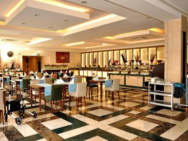 Stravovanie prebieha formou all inclusive, ktoré zahŕňa raňajky, obedy a večere formou bufetu vrátane nápojov. K dispozícii sú miestne a vybrané importované nápoje, ľahké popoludňajšie snacky, pečivo, zmrzlina a turecká káva. Na pláži a pri bazéne sú k dispozícii slnečníky, ležadlá a osušky.