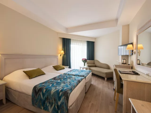 Hotel Side Star Park je ideálny pre všetky vekové kategórie, ktoré hľadajú priateľské a pohodlné miesto na oddych. Ocenená piesočnatá pláž je vzdialená len 150 metrov od hotela, ktorý sa nachádza v blízkosti historického centra Side, kde sa dajú vyskúšať romantické prechádzky a objavovanie kultúrnych pamiatok. Hotel, ktorý prešiel kompletnou rekonštrukciou v roku 2020, ponúka rôzne bazény, tobogány, wellness služby a množstvo rodinných aktivít.