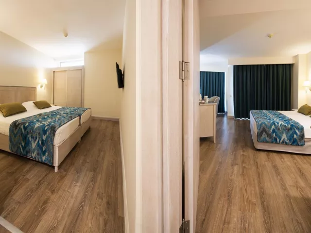 Izby sú vybavené individuálnou klimatizáciou, satelitnou TV, telefónom, Wi-Fi pripojením (zdarma), trezorom a minibarom, ktorý je denne dopĺňaný nealkoholickými nápojmi a pivom. V každej izbe sa nachádzajú aj sociálne zariadenia, fén a balkón. Dostupné sú aj priestranné rodinné izby s dvoma oddelenými spálňami.