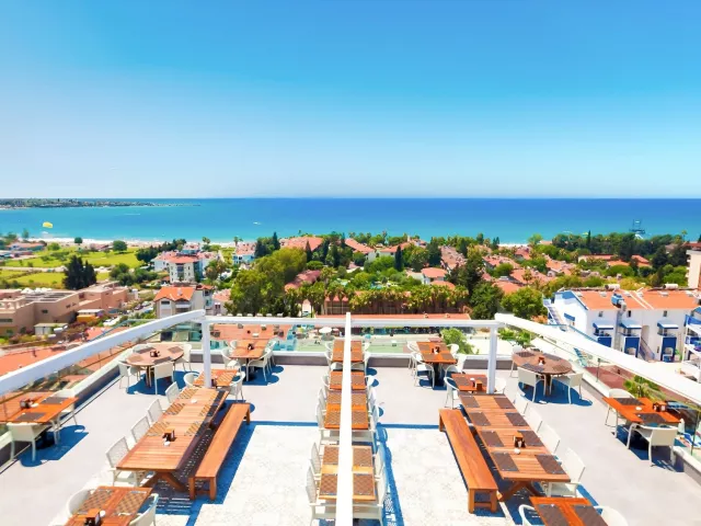 Hotel je 8-poschodový a ponúka celkom 157 izieb. Hostia môžu využívať 2 výťahy, lobby s WiFi, reštauráciu a 3 bary. K dispozícii sú 3 bazény, soft animácie, fitnes, stolný tenis, šípky, turecké kúpele, sauna a parná sauna. Za poplatok sú k dispozícii služby SPA centrum, masáže, kaderníctvo, obchody, práčovňa a doktor.