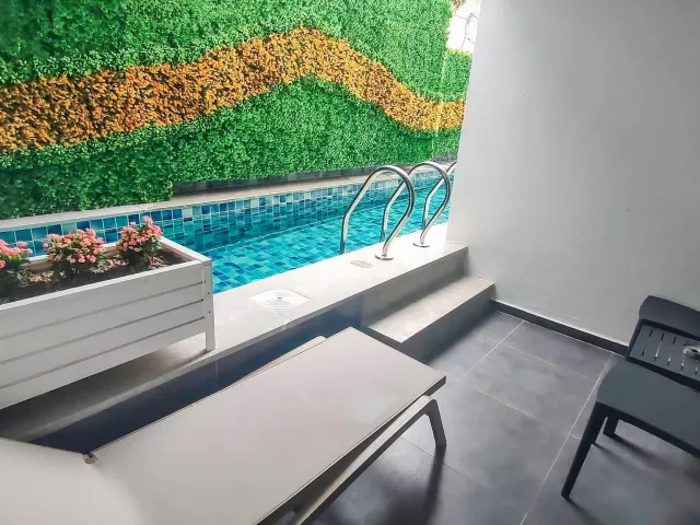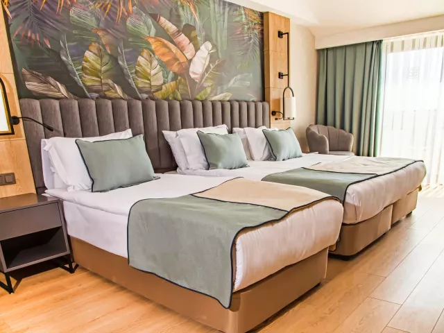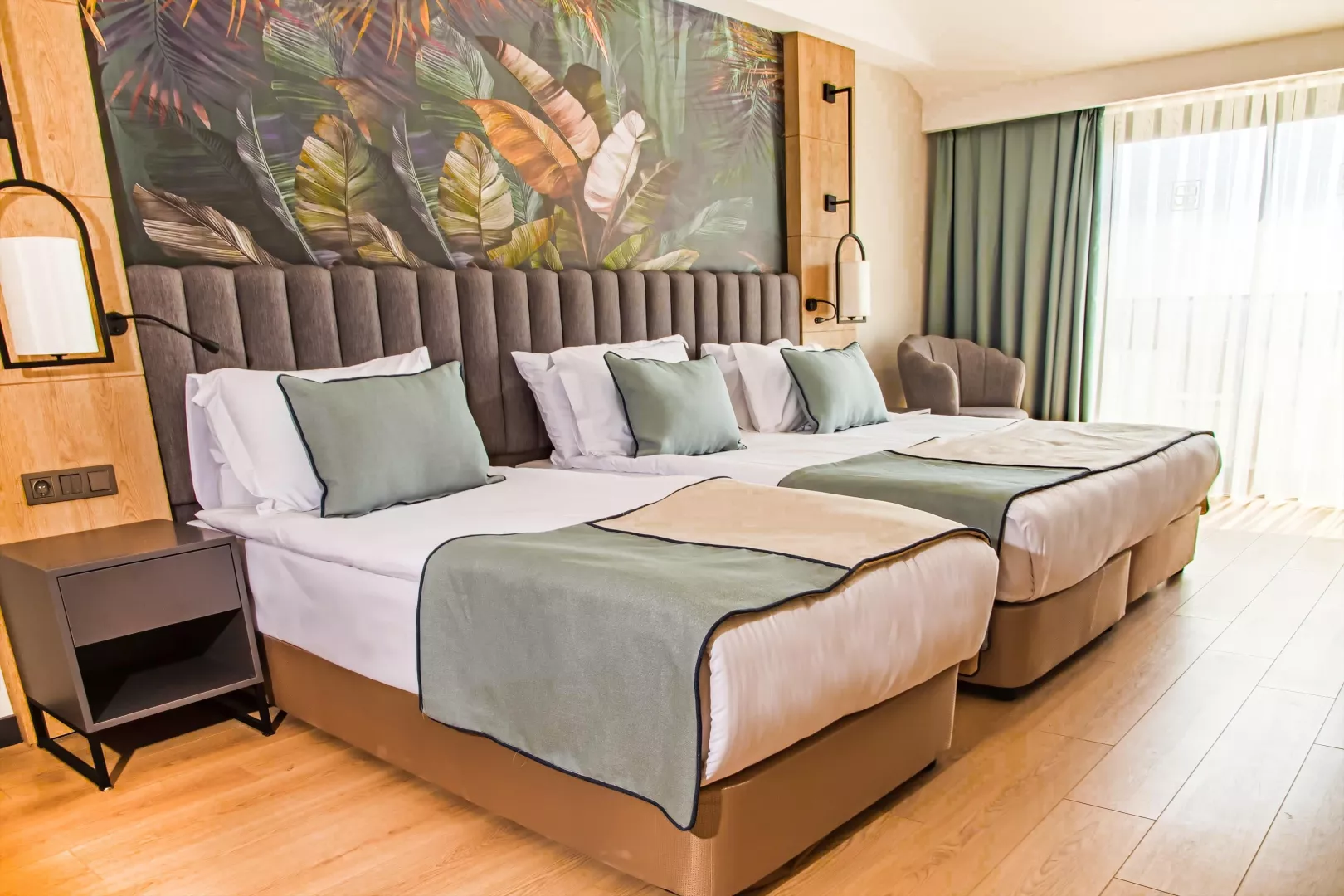 Hotel ponúka dvojlôžkové izby s možnosťou prístelky, vybavené klimatizáciou, balkónom, televíziou, minibarom, trezorom a kúpeľňou so sprchou a WC. K dispozícii sú aj izby so zdieľaným bazénom a izby pre hendikepovaných. Rozlohy izieb sa pohybujú približne od 25 m² do 35 m², pričom niektoré izby majú priamy prístup do bazéna.
