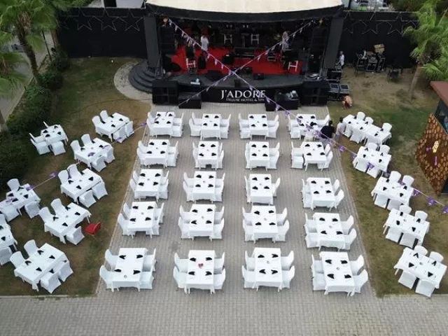 Hotel J'adore Deluxe sa nachádza približne 7 km od centra Side a 5 km od Manavgatu, s prístupom na pláž, ktorá je vzdialená približne 300-350 m. Príjemné prechádzky piniovým hájom alebo hotelový shuttle bus umožňujú jednoduchý prístup k pláži, kde sú k dispozícii slnečníky, ležadlá a osušky zadarmo.