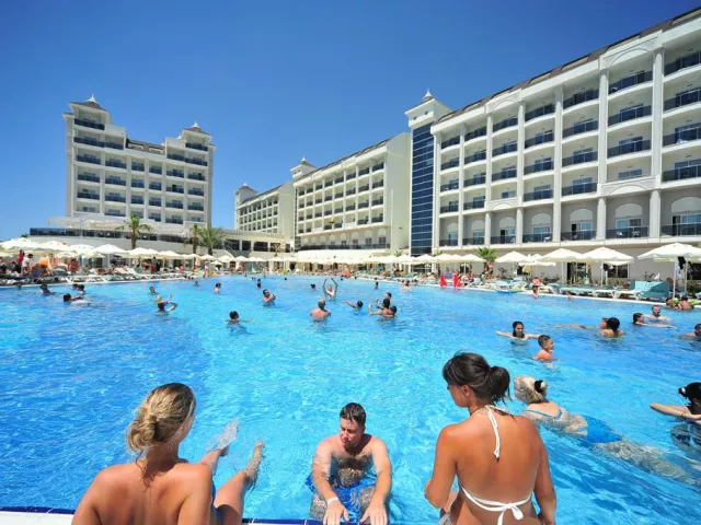 Komplex disponuje vstupnou halou, 24-hodinovou recepciou, výťahmi, hlavnou reštauráciou a dvoma reštauráciami à la carte, pričom jedna návšteva za pobyt je zdarma s predchádzajúcou rezerváciou. K ďalším zariadeniam patrí lobby bar, bar na pláži, disco bar, street bistro otvorené 24 hodín, minimarket, konferenčná miestnosť a bezplatné WiFi pripojenie v celom areáli. Vonkajší priestor ponúka terasu na slnenie, bazén, bazén so šmykľavkami, detský bazén a krytý bazén. Za príplatok sú dostupné služby práčovne, kaderníctva či prenájmu áut.