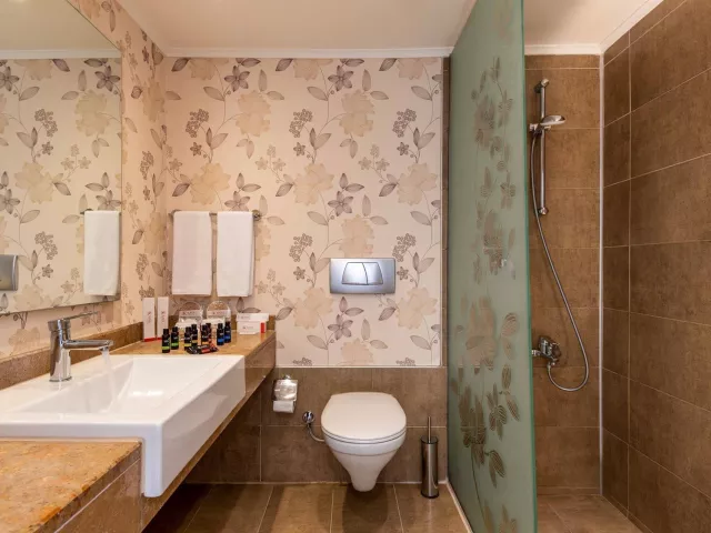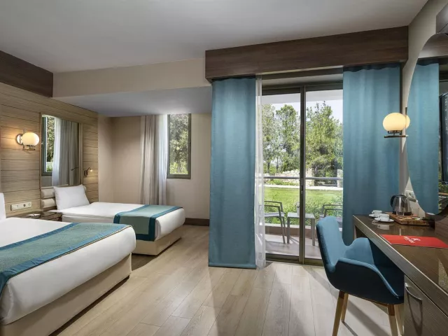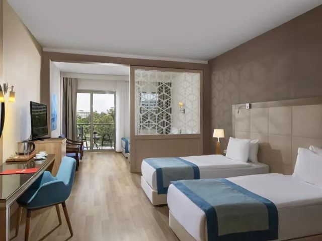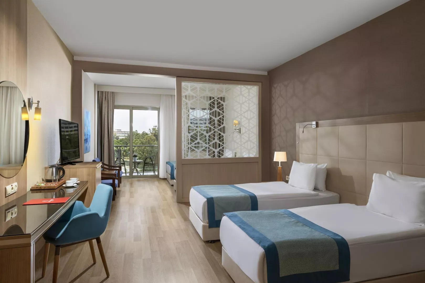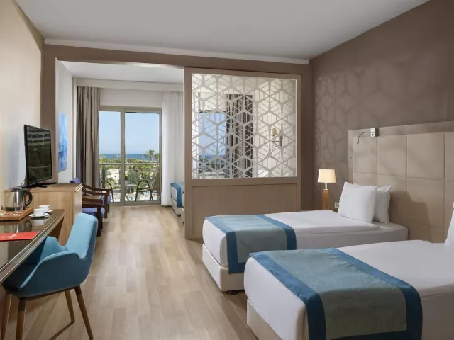 Izby sú vybavené klimatizáciou, balkónom, minibarom (denne doplňovaným vodou a nealkoholickými nápojmi), TV/SAT, fénom na vlasy a trezorom (zdarma). Maximálna kapacita izby je pre 2 dospelé osoby a dieťa do 12 rokov. K dispozícii sú aj superior izby s výhľadom na bazén a s maximálnou obsadenosťou 4 dospelých osôb a dieťaťa do 12 rokov.