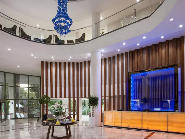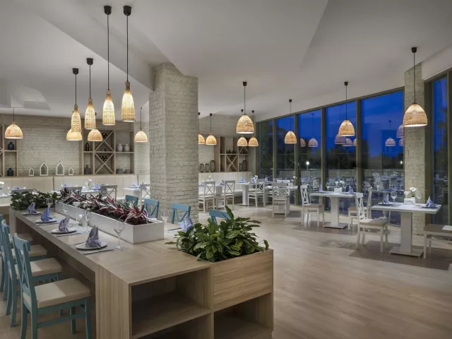 Hotel disponuje vstupnou halou s recepciou (24 hod.), hlavnou reštauráciou, tromi reštauráciami á la carte (italská, BBQ, medzinárodná), lobby barom otvoreným nepretržite, barom pri bazéne, plážovým barom, café truckom, dvoma vonkajšími bazénmi a jedným vnútorným bazénom. Poskytuje tiež bezplatné Wi-Fi a konferenčné miestnosti. Ležadlá, slnečníky a osušky pri bazéne sú taktiež zdarma. Pre deti je k dispozícii detský svet a bazén so šmykľavkami. K ďalším službám patrí kaderníctvo, lekár, fotograf, masáže, práčovňa a požičovňa áut za príplatok.