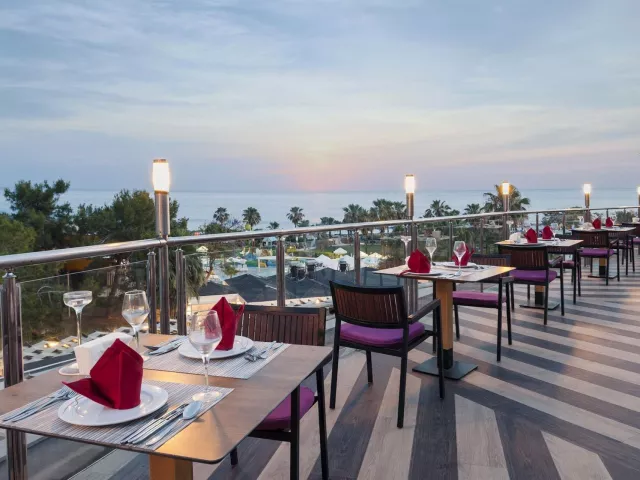 Ultra All Inclusive koncept zahŕňa bohaté bufetové raňajky, neskoré raňajky, obedy a večere, ako aj polnočné občerstvenie. K dispozícii sú aj občerstvenia počas dňa a nápoje miestnej výroby v určených časoch, registrované v lobby bare a reštauráciách á la carte, kde je jedna návšteva zdarma (rezervácia nutná).