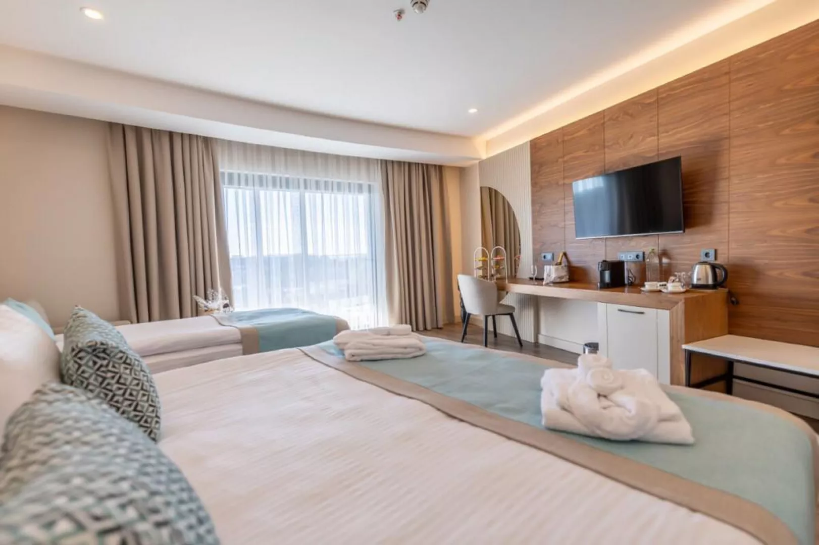 Hotel ponúka 325 izieb, ktoré sú vybavené balkónom, klimatizáciou, sušičom na vlasy, minibarom, TV, telefónom, trezorom a setom na prípravu kávy a čaju. Typy izieb sú rôzne: